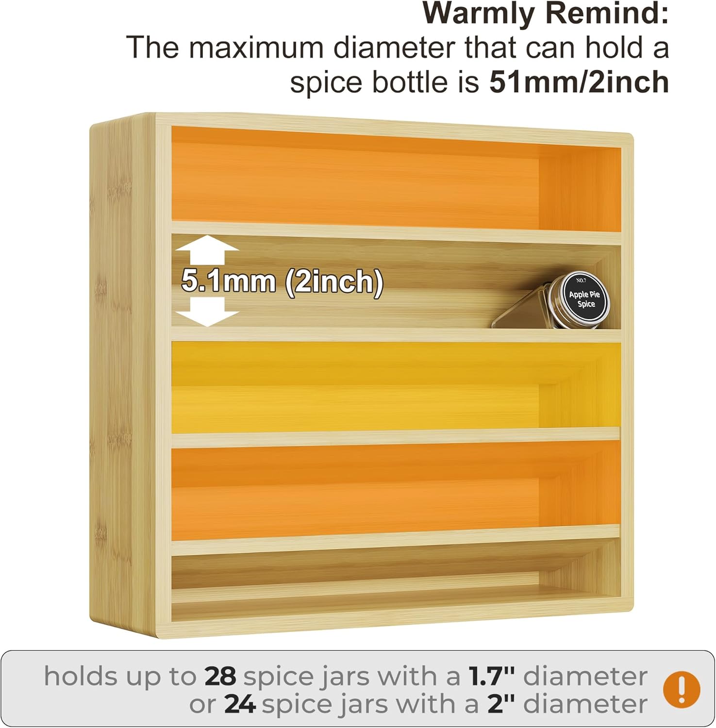 - Warmly Remind: The maximum diameter that can hold a spice bottle is 51mm/2inch.
