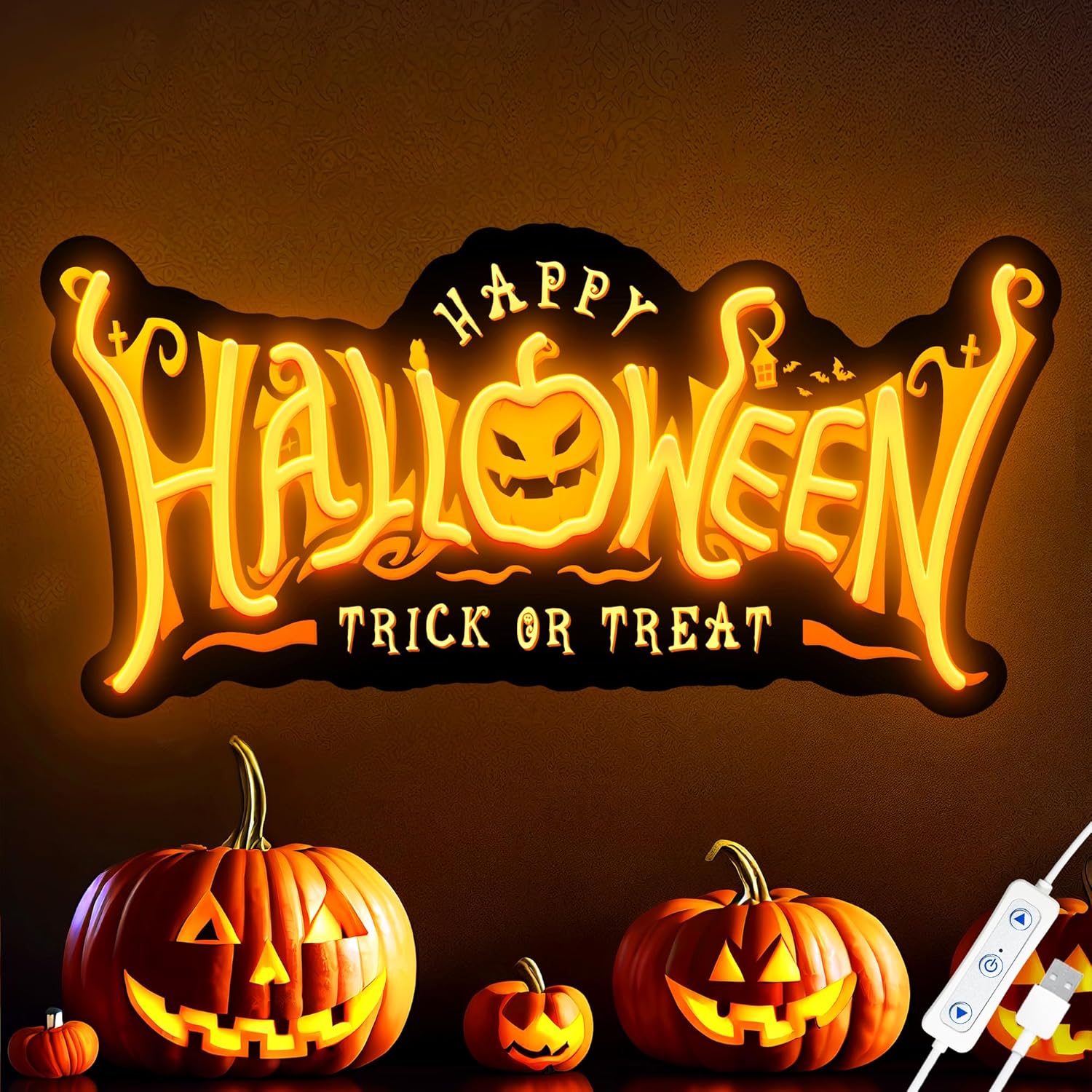 SELICOR Happy Halloween Neon Signs for Wall Decor,Halloween Pumpkin Neon Light Sign,USB Powered Light Up Acrylic LED Sign With Hooks for Bedroom,Kids Room,Living Room,Bar,Party,Halloween Decor