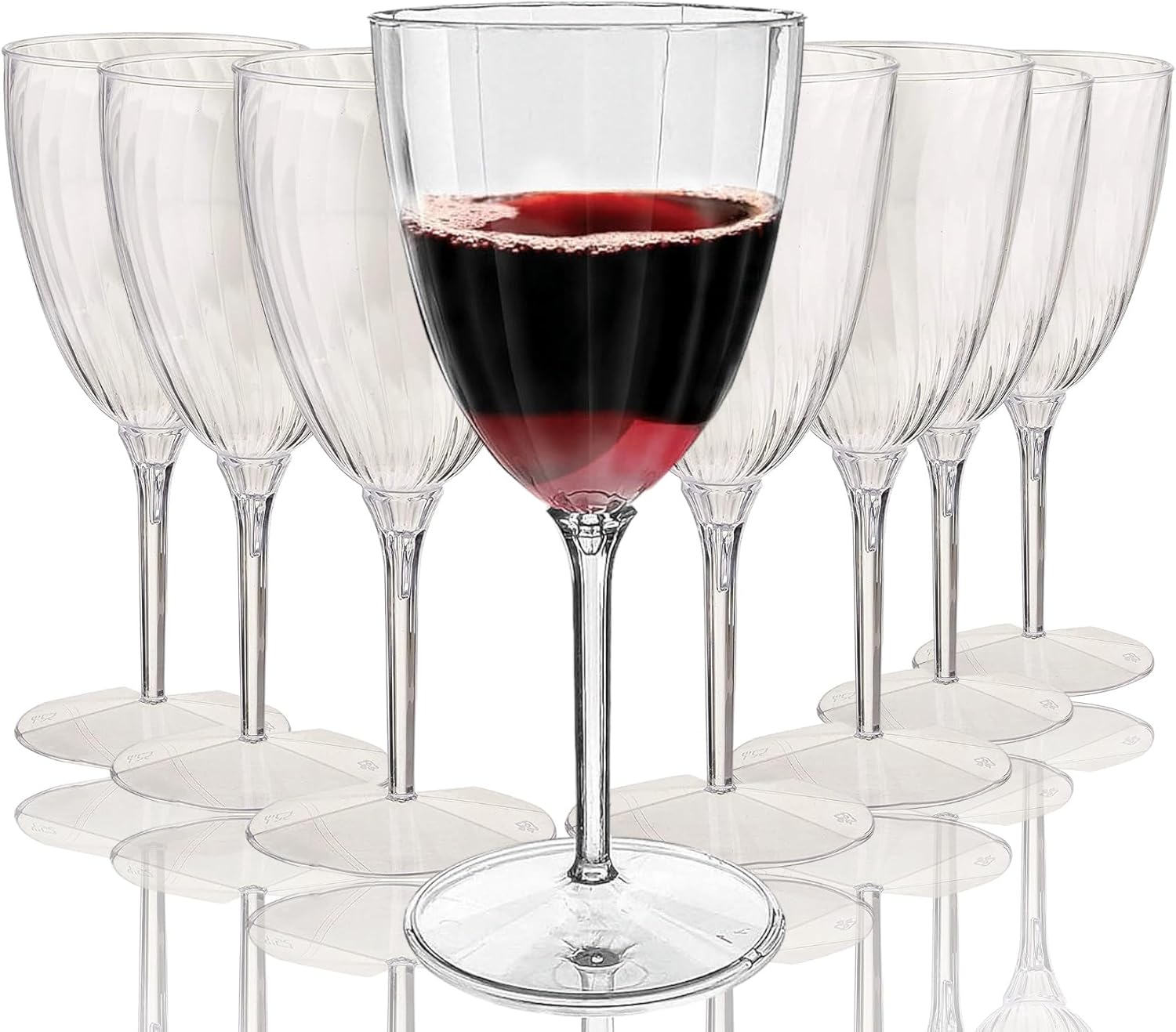 - 7.8 oz Disposable Plastic Cups: Perfectly sized for champagne, wine, and cocktails. With a one-piece construction, there's no need to attach a base—simply pour your drinks and enjoy the convenience.