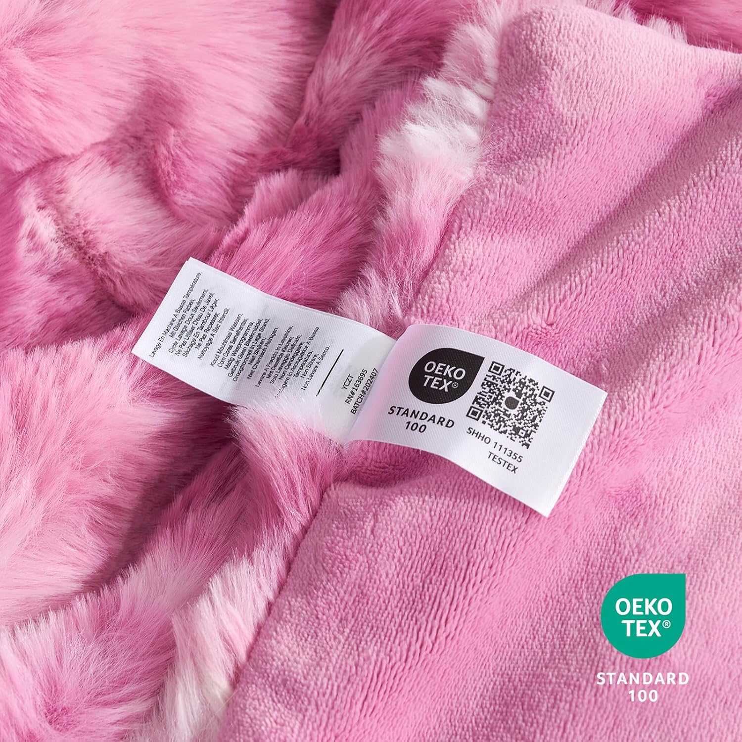 Cozy Bliss Faux Fur Throw Blanket for Couch, Fuzzy Soft Plush Thick Bubble Blanket for Sofa Bedroom Living Room, 60 * 80 Inches Tie Dye Pink