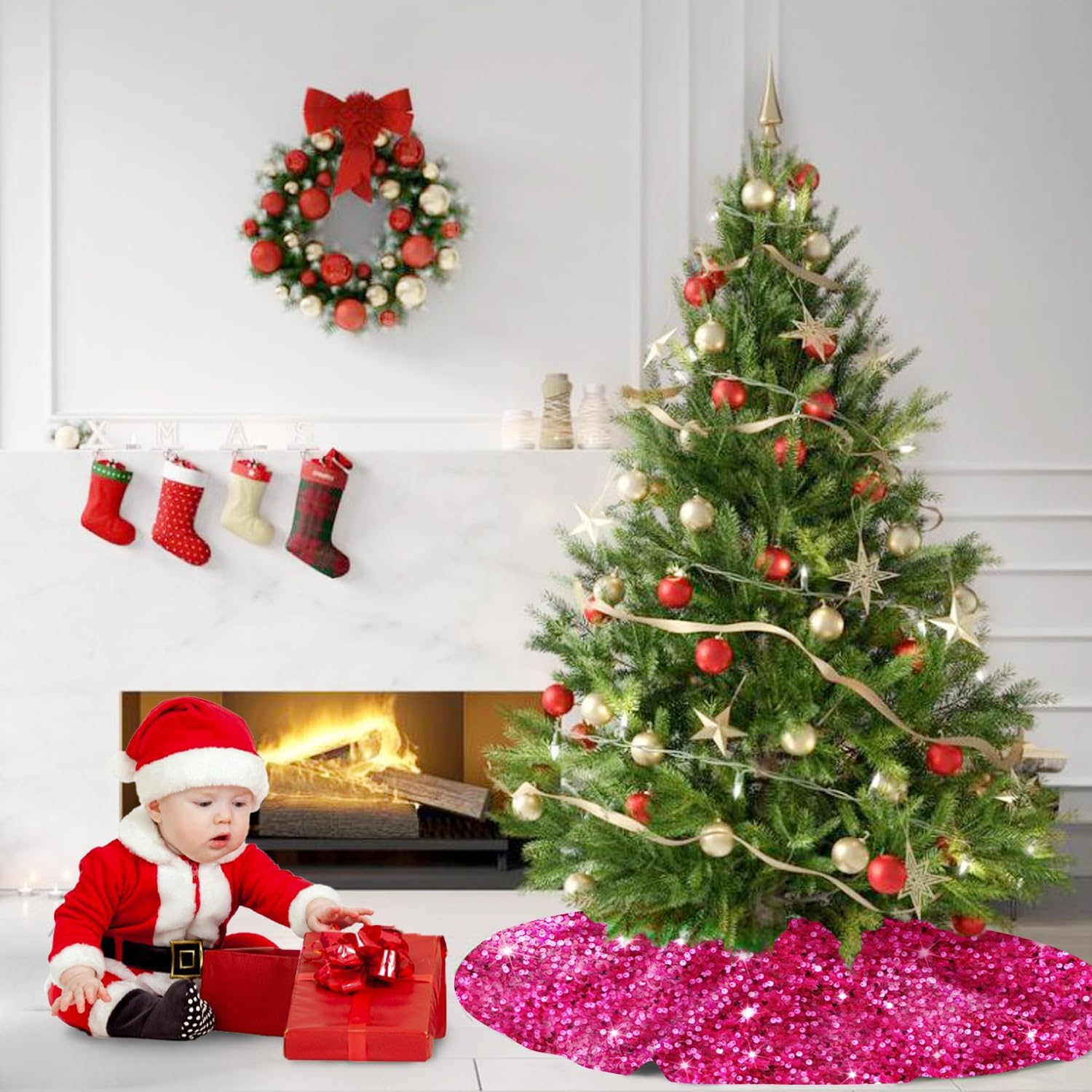- ❄️【Size Detail - 48 Inch Christmas Tree Skirt】You will receive a 48inches diameter hot pink tree skirt, fitting under 6-8 foot trees. You can put some gifts, Christmas boxes, Christmas ball on the Christmas tree base cover . The sparkle Christmas tree blanket is perfect for decorating your home and become part of your holiday tradition.
