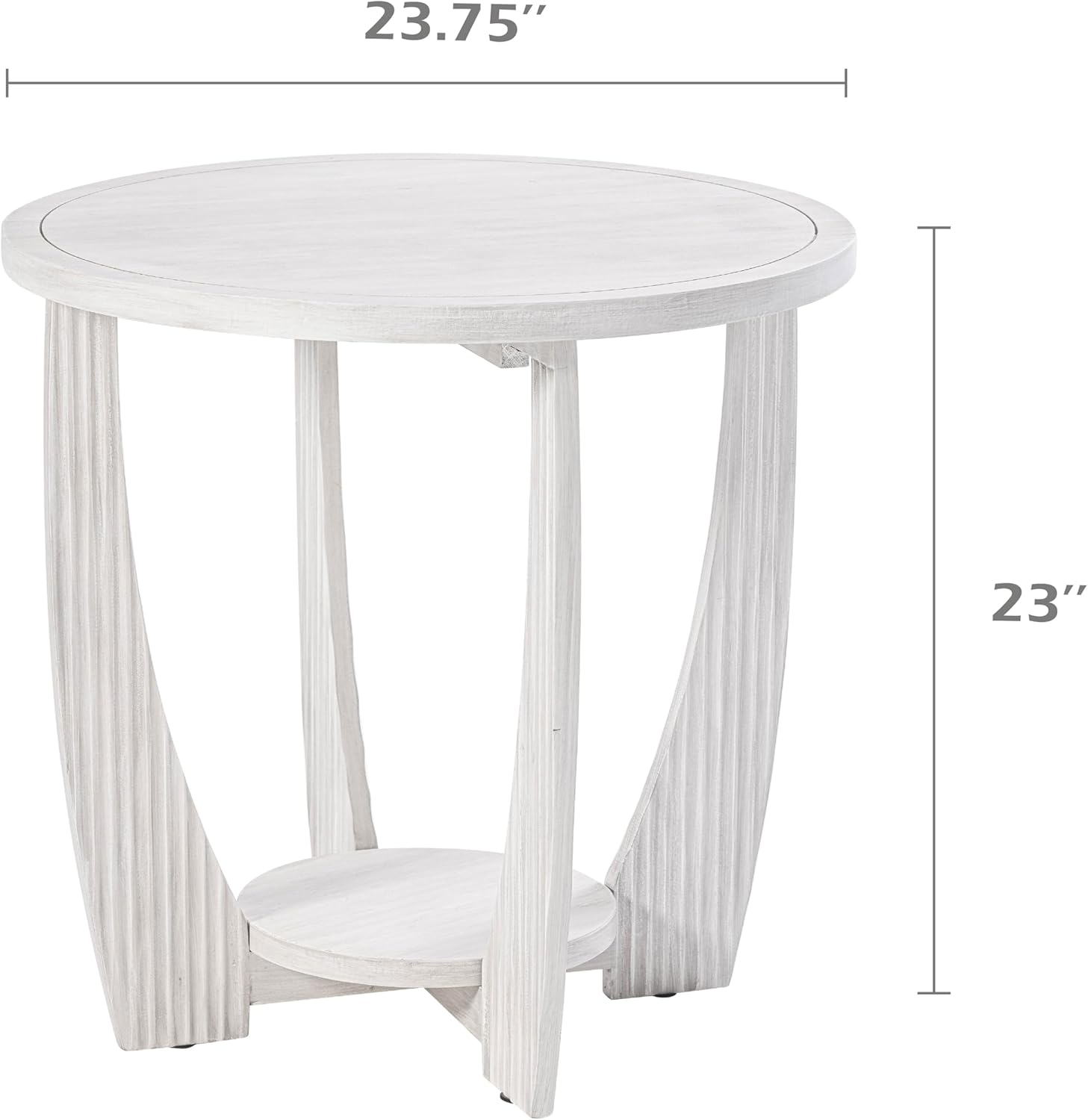 Rustic Farmhouse end Table X 2P with Storage Shelf, French Country Accent Side Table for Family, Dinning or Living Room, Small Spaces, Modern, Round, White