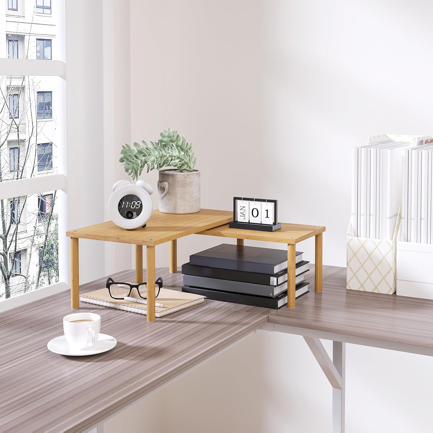 - 【Flexible Combination, Space Optimization】With their unique design, with one slightly smaller than the other, these shelf organizers can be stacked on top of one another, nested, used separately, or even in an L-shape.It is a flexible storage solution that transforms your kitchen into a more organised and tidy space.