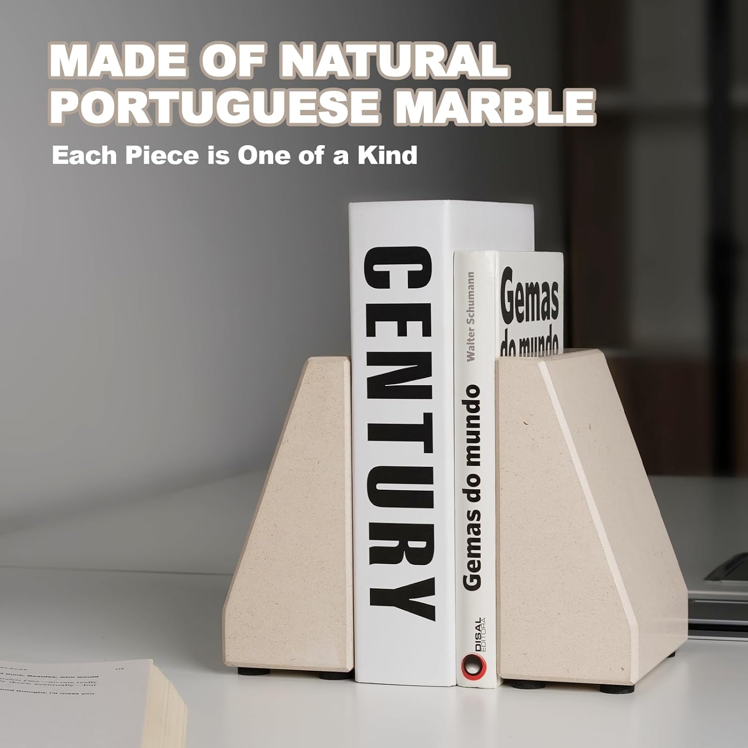 Book End, Natural Marble Bookend for Shelves, Non-Skid Bookends for Heavy Books, Heavy Duty Book Stopper for CDs and Oversized Books, Luxury Book Shelf Holder, Moleanos Beige