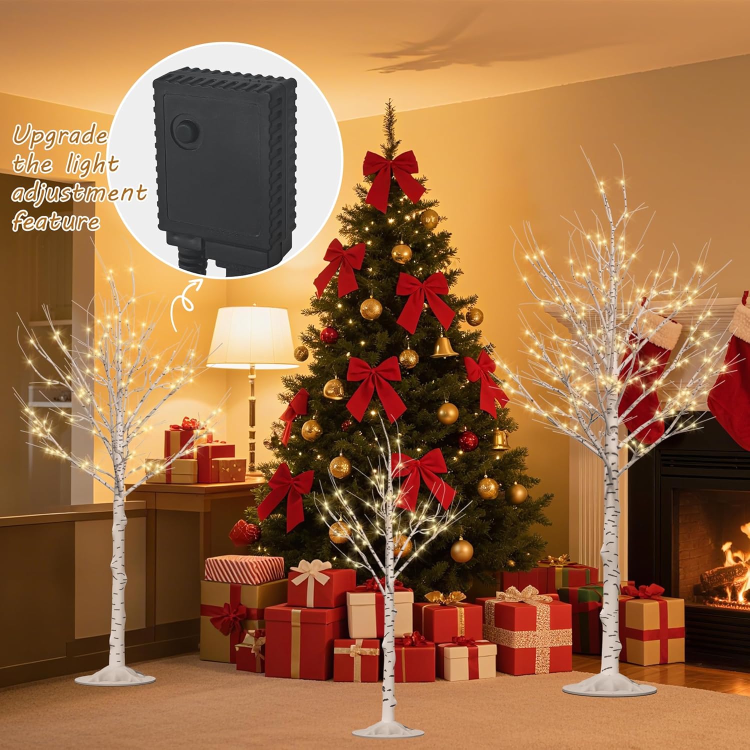 Outdoor Christmas Decorations Lighted Birch Tree Set of 3, LED Warm White 4, 6 and 8 Feet, for Indoor Christmas Decor, Party, Garden, Yard, Wedding, Holiday