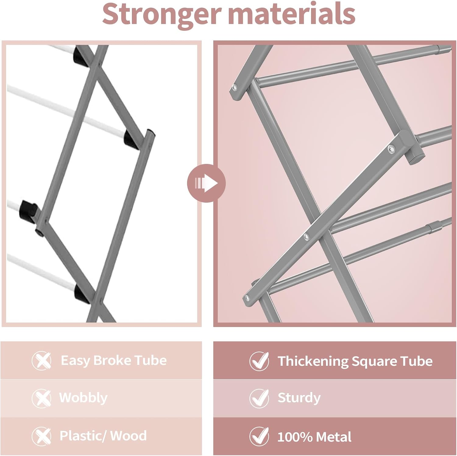 - Material: The clothes drying rack is made of metal and has a rust-resistant coating, which can endure different weathers for indoor and outdoor use, making it perfect for apartments or small spaces.
