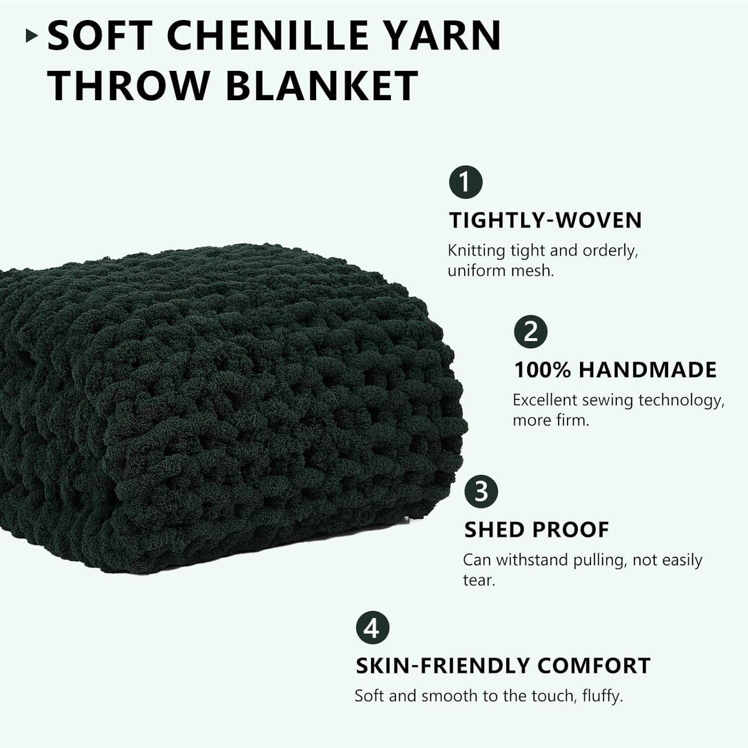 - 100% Handmade Chunky Knit Blanket: Our knit blanket throw is made from 100% hand-woven fabric with premuim Chenille yarn, excellent handcrafted knitting improves yarn density to create a warm and soft touch, full body hug to immerse you in tenderness