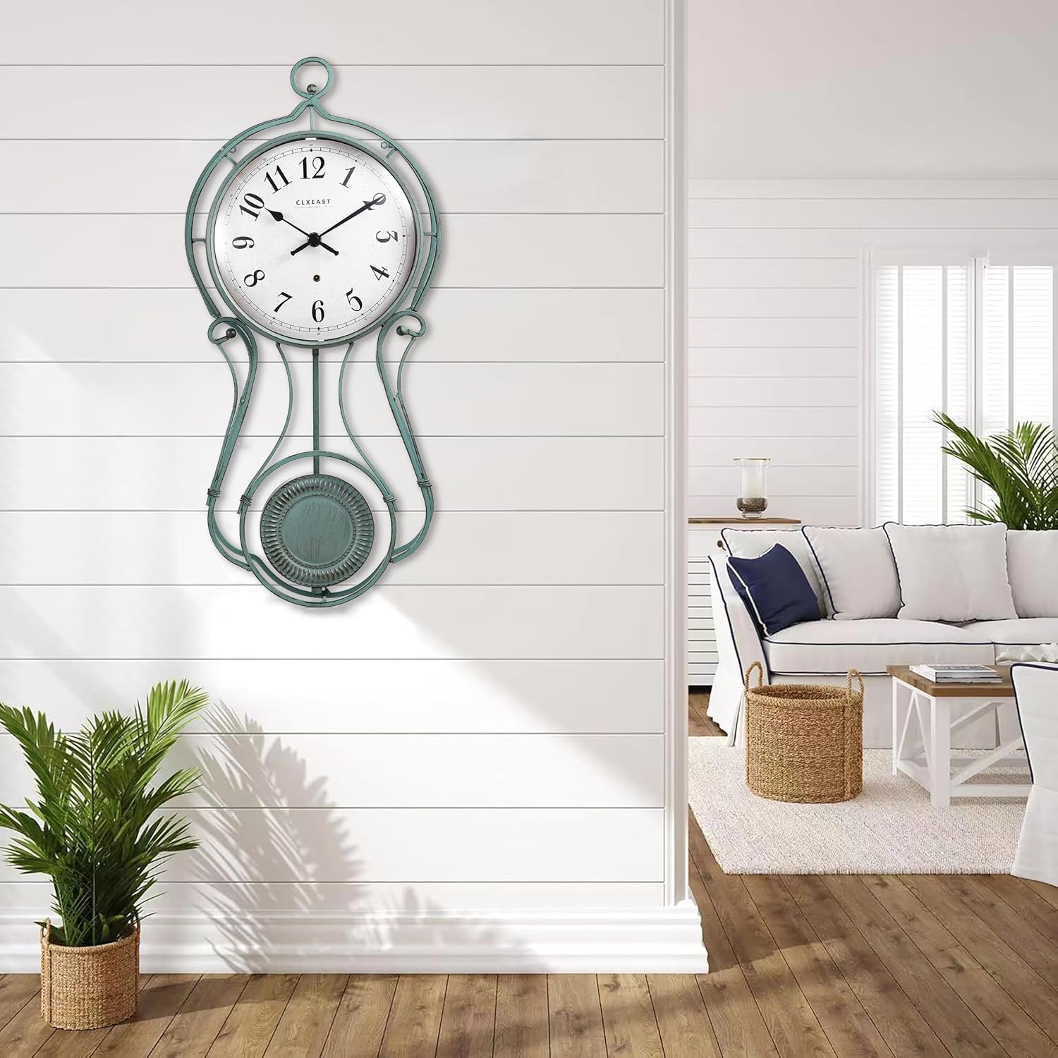 - 【Functional Decorative Pendulum Wall Clock】: Our modern pendulum wall clock features a hand brused aged teal green finish, making it a perfect addition to any living room decor. This large pendulum wall clock combines classic charm with a contemporary aesthetic, enhancing your space