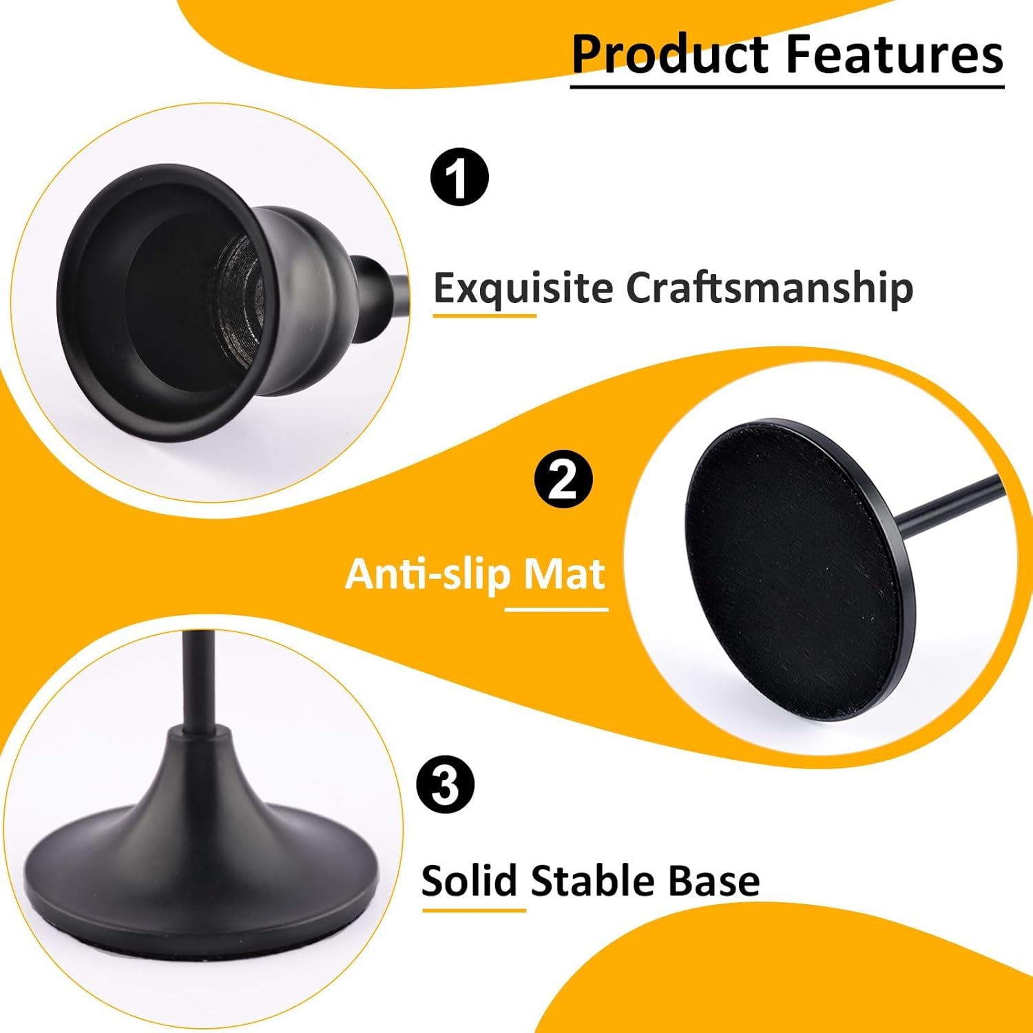 Metal Candle Holders for Candlesticks Taper Candlestick Holders Set Vintage Decorative Centerpiece Candelabra Tall Candle Stands for Halloween Thanksgiving Christmas (Matt Black, 1 Set (3 pcs))