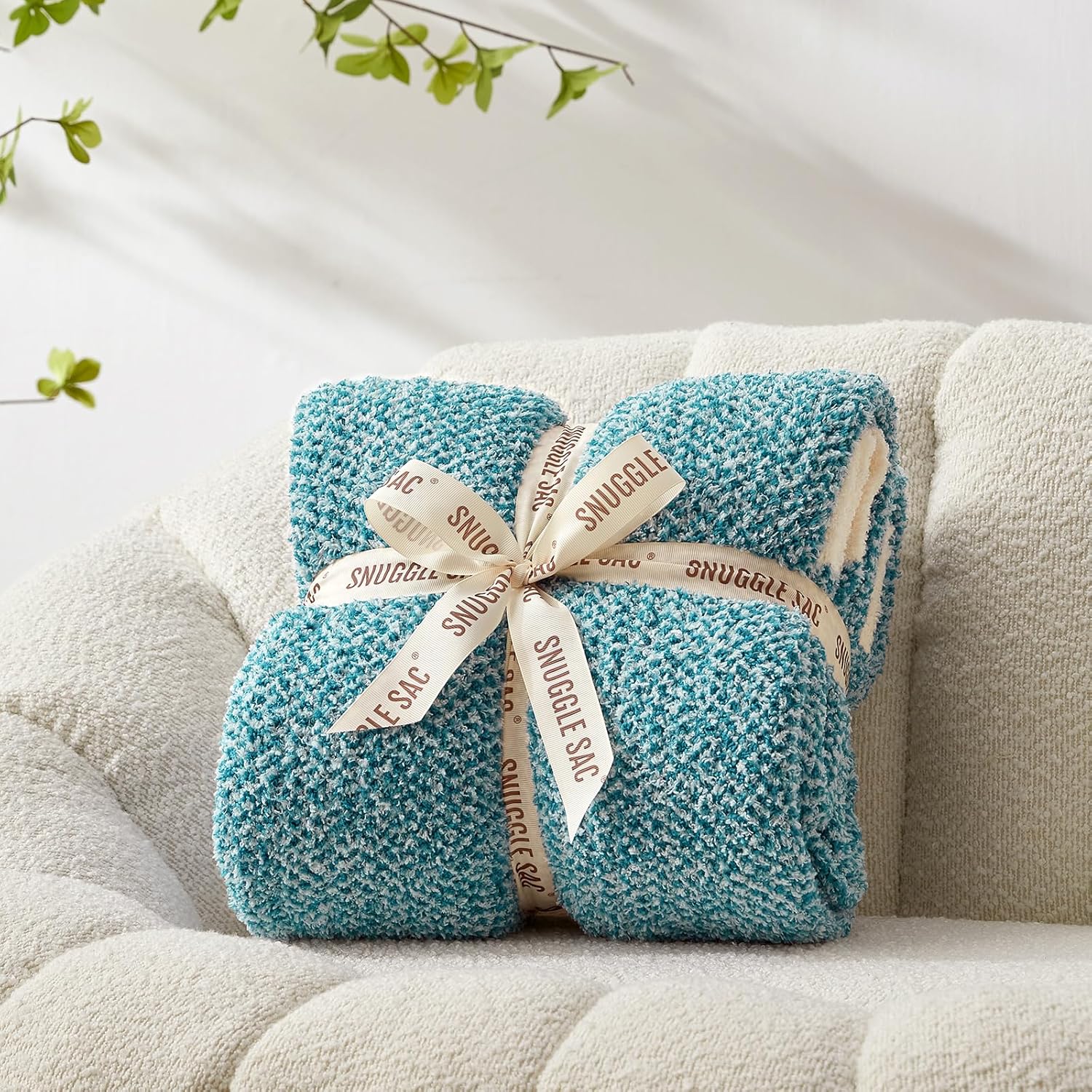 Snuggle Sac Teal Throw Blankets for Couch, Super Soft Warm Blankets Cozy Knit Fuzzy Plush Lightweight Throws for Sofa, Bed, Living Room, Heather Teal, 50x60 inches
