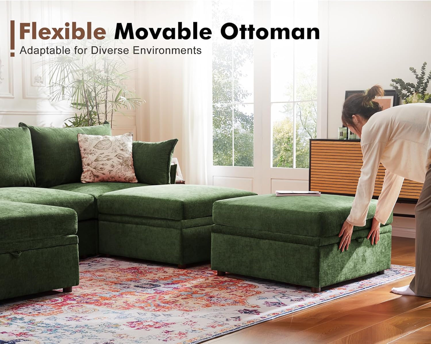 102.6" U Shaped Modular Sectional Sofa, 5 Seater Couch with Storage Ottoman Deep Seat and High Backrest with Removable Cover for Living Room, Apartment - Chenille Green