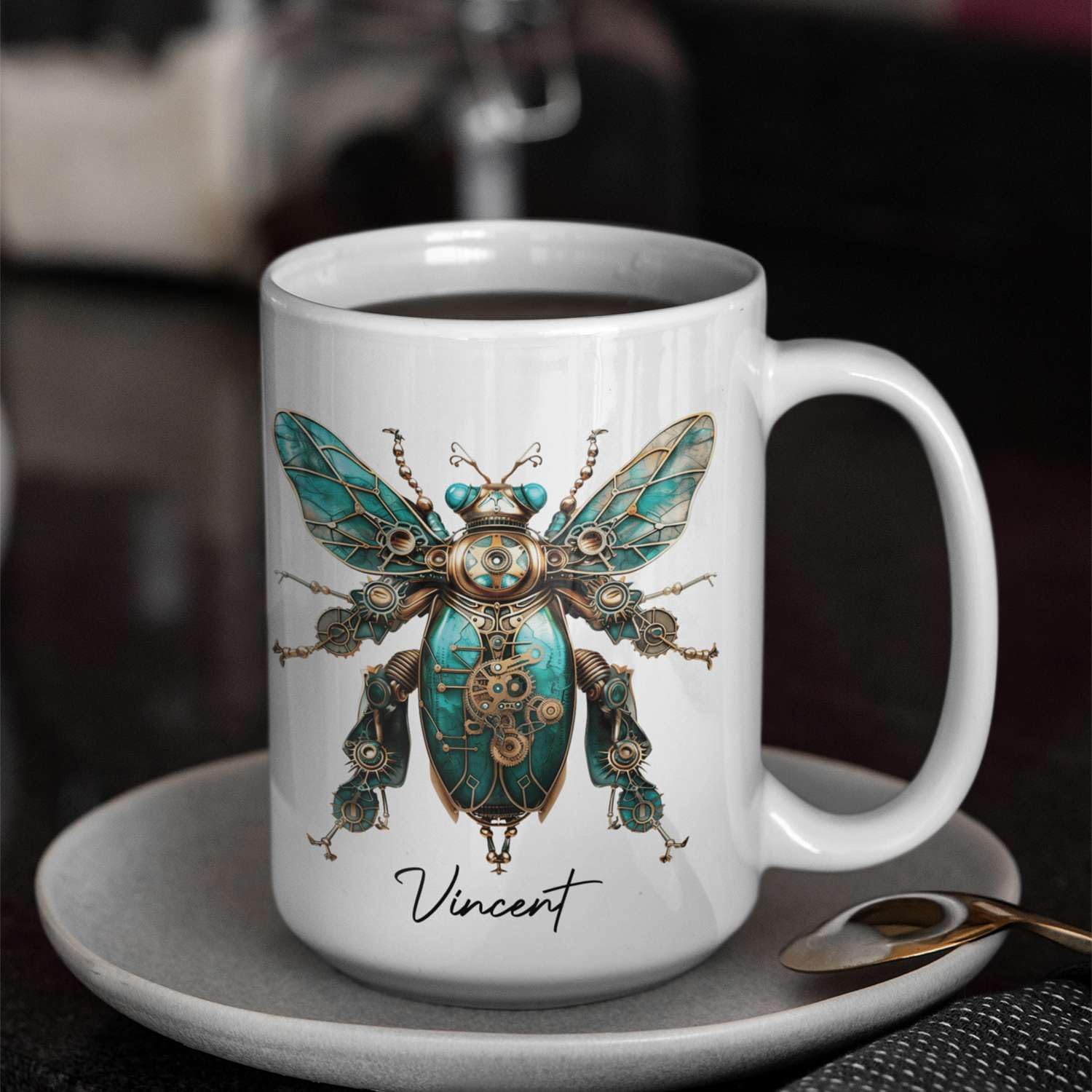 - ✨【UNIQUELY PERSONALIZED】Celebrate your love for science fiction with this Unique Mechanical Insect Art Ceramic Cup. Featuring a personalized steampunk beetle design, this 11oz coffee mug allows you to add a custom name for a special touch. Click "Customize Now" to create a novelty mug gift for science fiction enthusiasts. This customized white mug is ideal for daily use and makes a unique and thoughtful present for any occasion.
