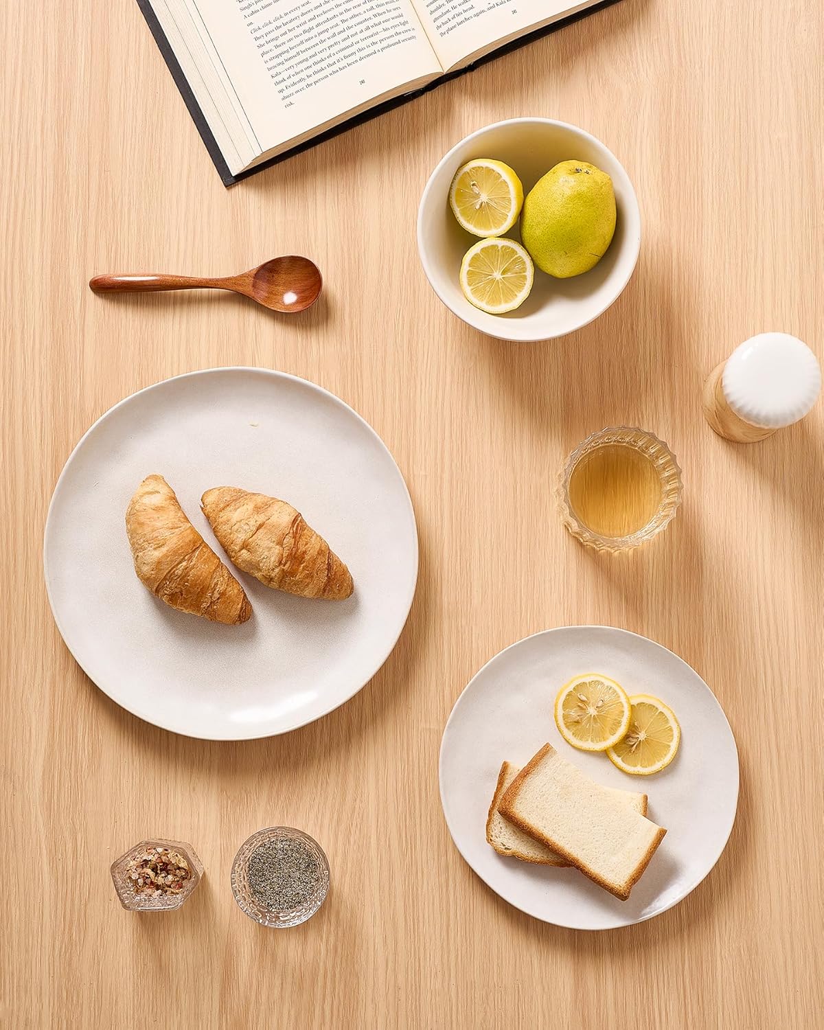 Famiware Dinnerware Sets for 4, Ocean Round 12-Piece Kitchen Plates and Bowls Sets, Microwave and Dishwasher Safe, Scratch Resistant, Matte White