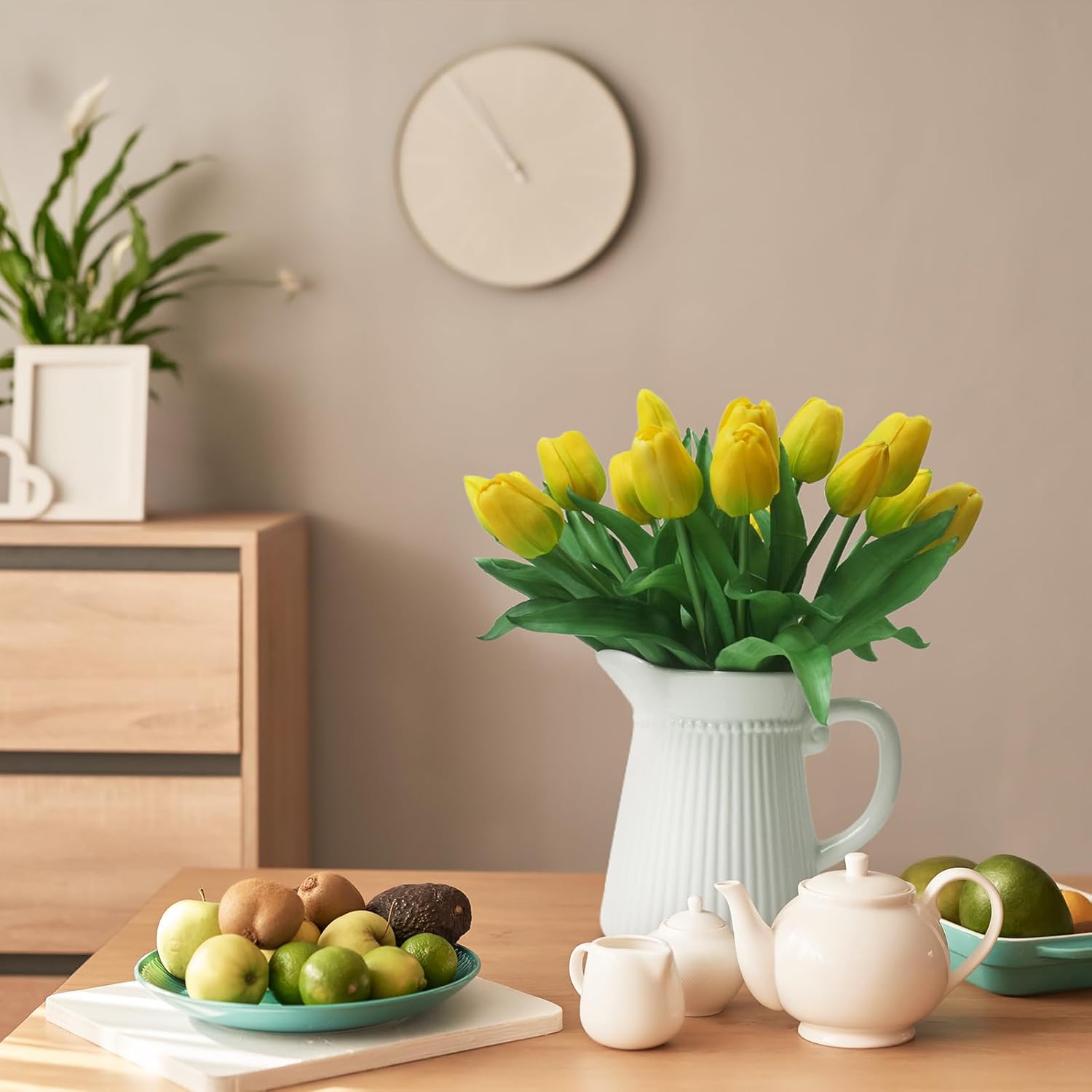 - [Real Touch]: Our latex tulips closely mimic the texture of real flowers, and the buds resemble the natural growth state of the plant. With bright, shiny colors, real touch flowers provide a unique sensory experience, uplifting your mood when placed in your home.