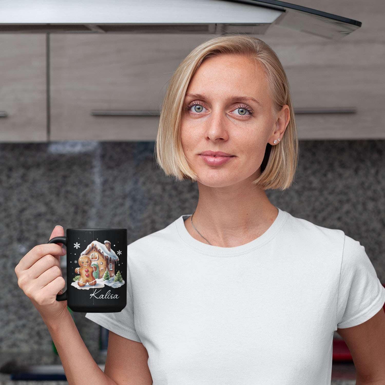 Personalized Christmas Gingerbread Black Cup, Christmas Gingerbread House Design Mug, Customized Name Christmas Coffee Cup 11oz 15oz, Custom Xmas Themed Ceramic Mug, Gift For Son Daughter