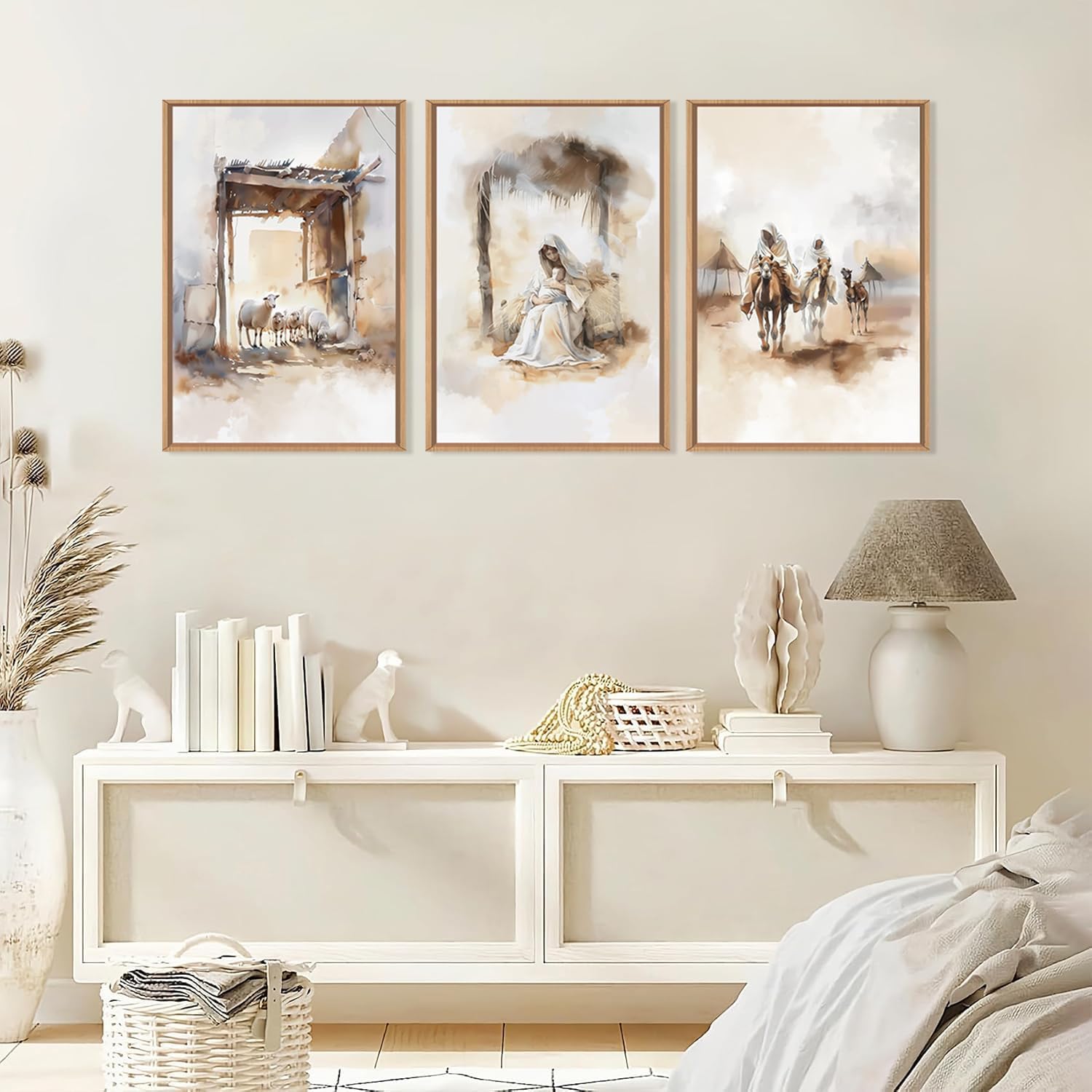 - 【Jesus Christian Catholic Wall Art】 The Size of the Christian framed canvas wall art set is: 16x24 inchx3pcs (40x60cmx3pcs). Vintage Jesus Poster Prints artwork use high-quality environmentally friendly ink and high-quality canvas, and use the industry's top printers for layered spraying, the colors are delicate and the transition is natural.bring you visual enjoyment.