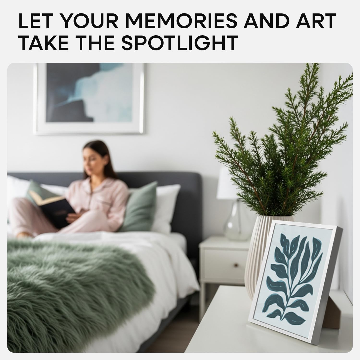 Homeforia 8.5x11 Picture Frame Silver, High End Metal 8.5 x 11 Poster Frames with Mat 6 by 8 Photo, 11x8.5 Frame Matted to 6x8 Print, 8.5by11 Wall or Tabletop Frame, Tempered Glass, Wall Kit, Set of 1