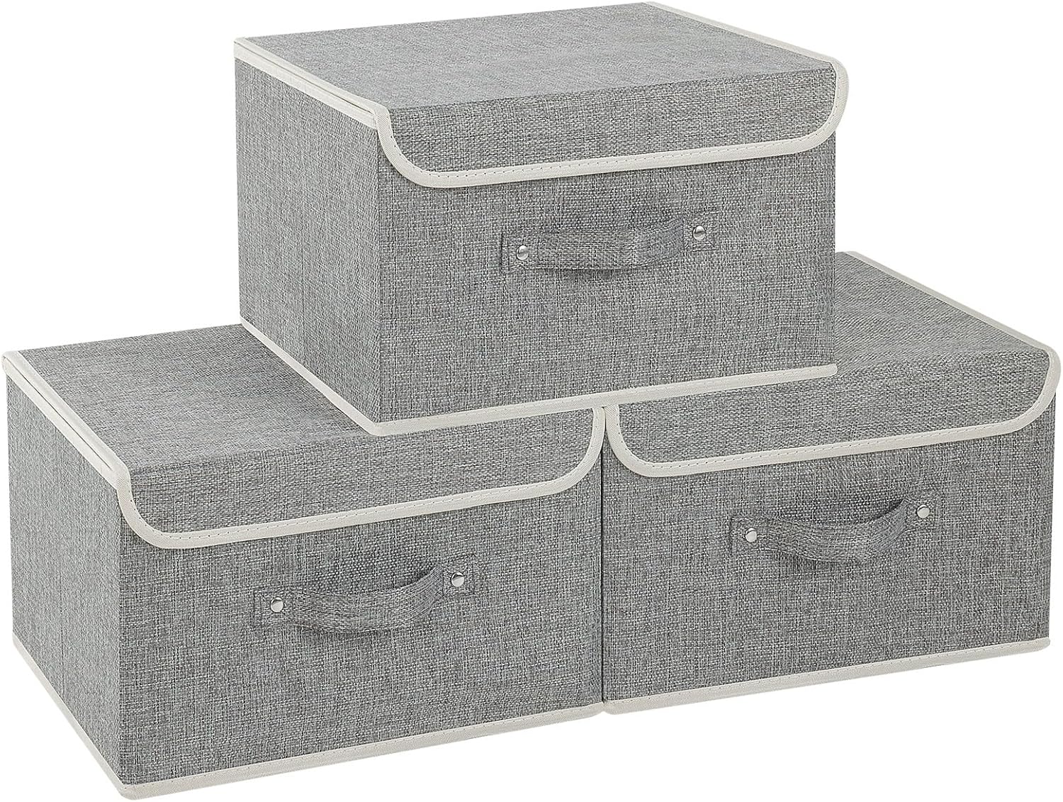 Fabric Storage Bins Cube Organizers with Flip-Top Lid and Handles,Storage Boxes for Organizing Home,Office,and Closet,Grey,3 Pack 13 X 9.1 X 7.9 in