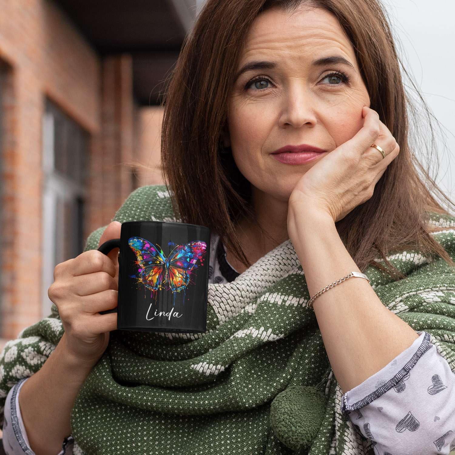 Customized Butterfly Mug, Themed Coffee Cup, Gift For Men Women, Personalized Name Butterfly Black Mug, Ceramic Cup 11oz 15oz, Lover Mug