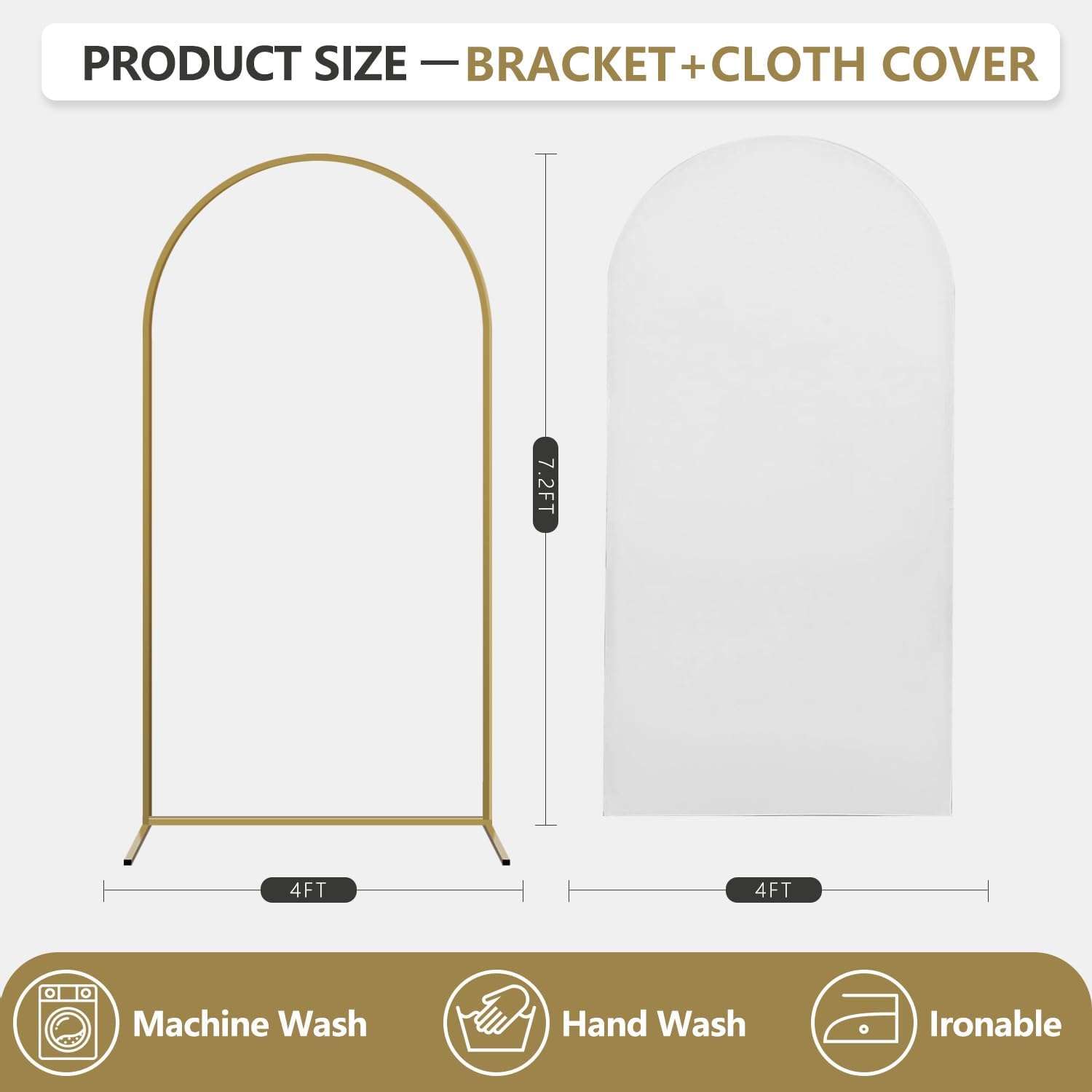 Arch Backdrop Stand and Cover Set, Metal Balloon Arch Backdrop 7.2ft, Gold Arched Stand Frame for Wedding, Parties,Birthday, Backdrop Decorations (White,7.2ft)
