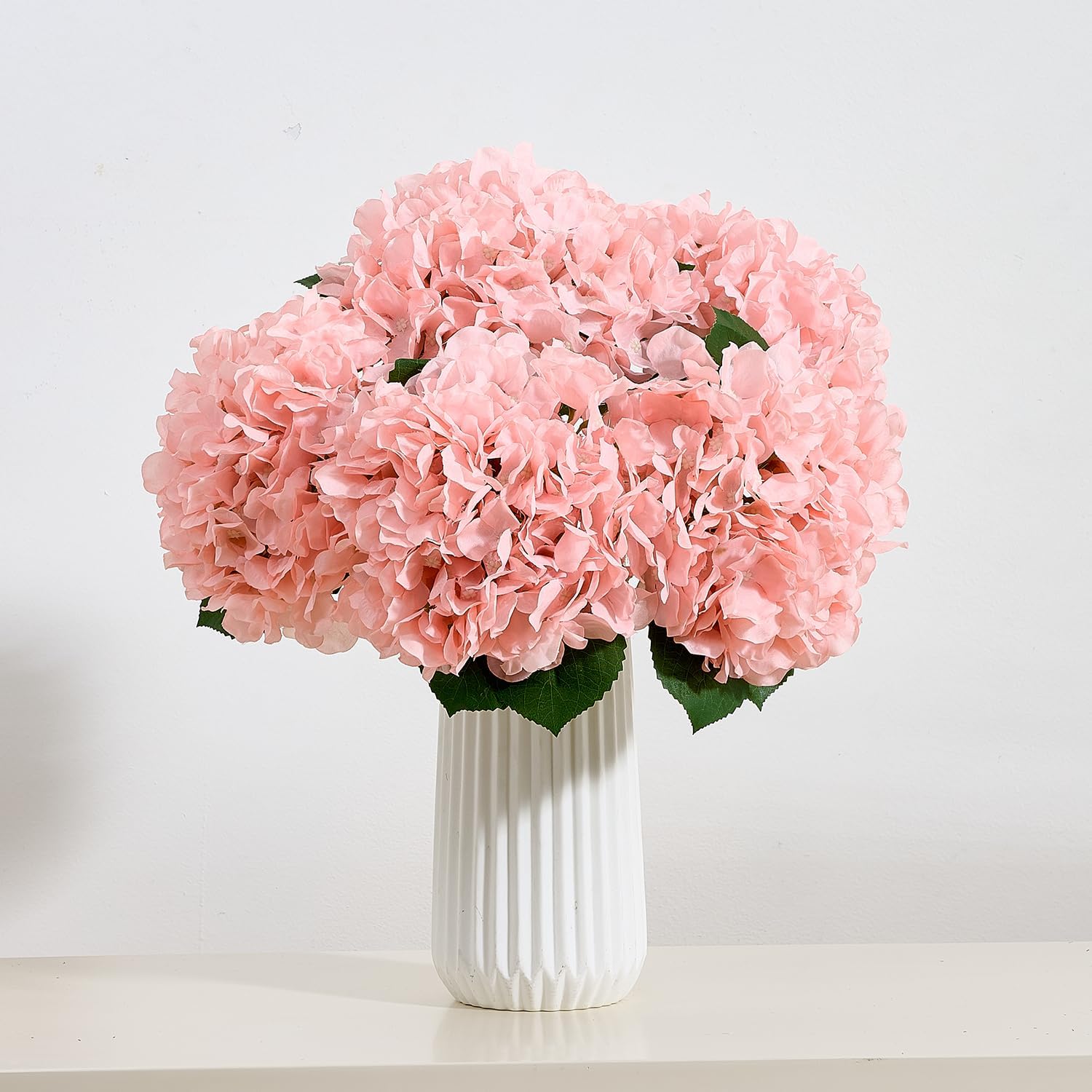 8Pcs Blush Fake Flowers Silk Hydrangea Artificial Flowers Bouquets Faux Hydrangea Stems for Home Table Centerpieces Wedding Party Decoration