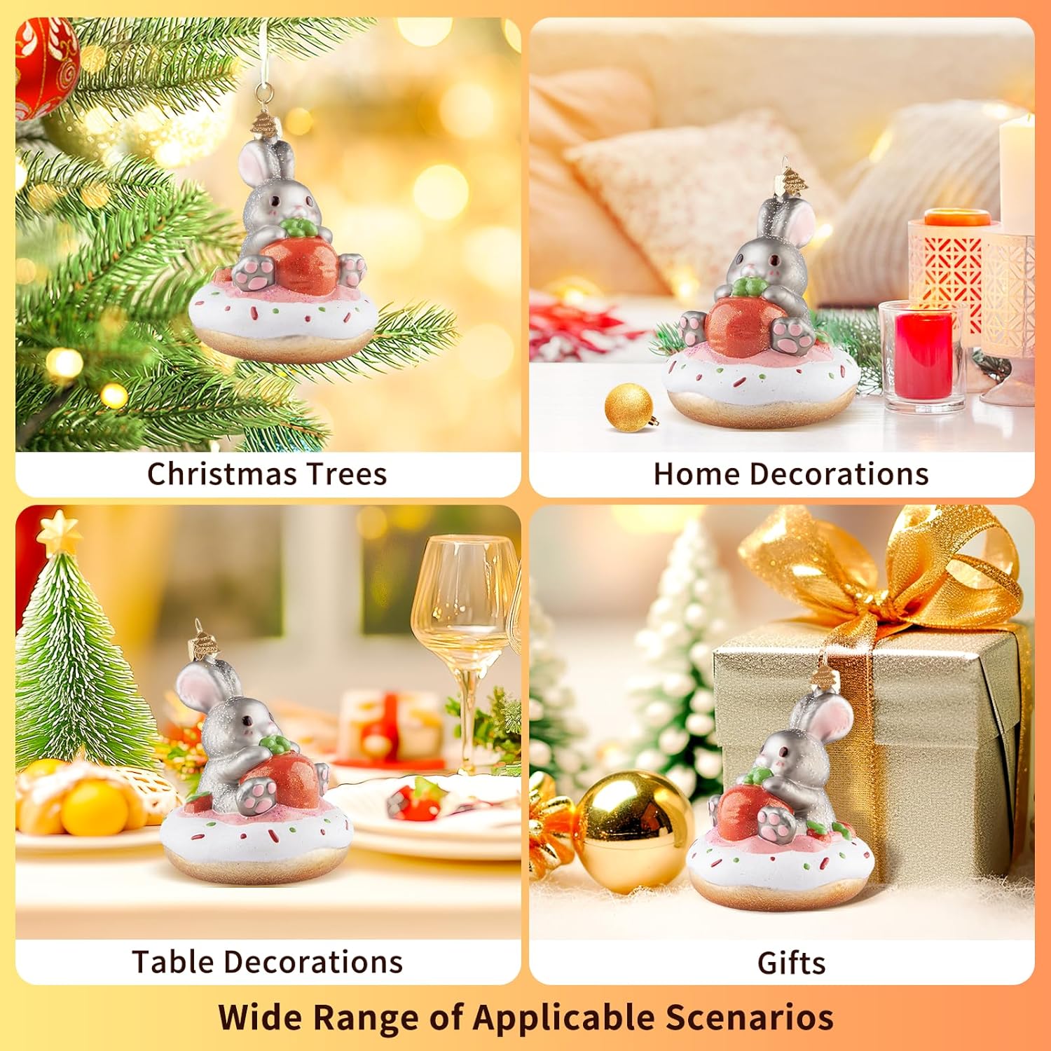 Rabbit Donut Christmas Tree Ornaments,Blown Glass Ornaments,Personalized Rabbit Collection Hanging Ornaments,Donut Pendant Ornament,Christmas Decorations for Animal Lovers Holiday Party Gifts