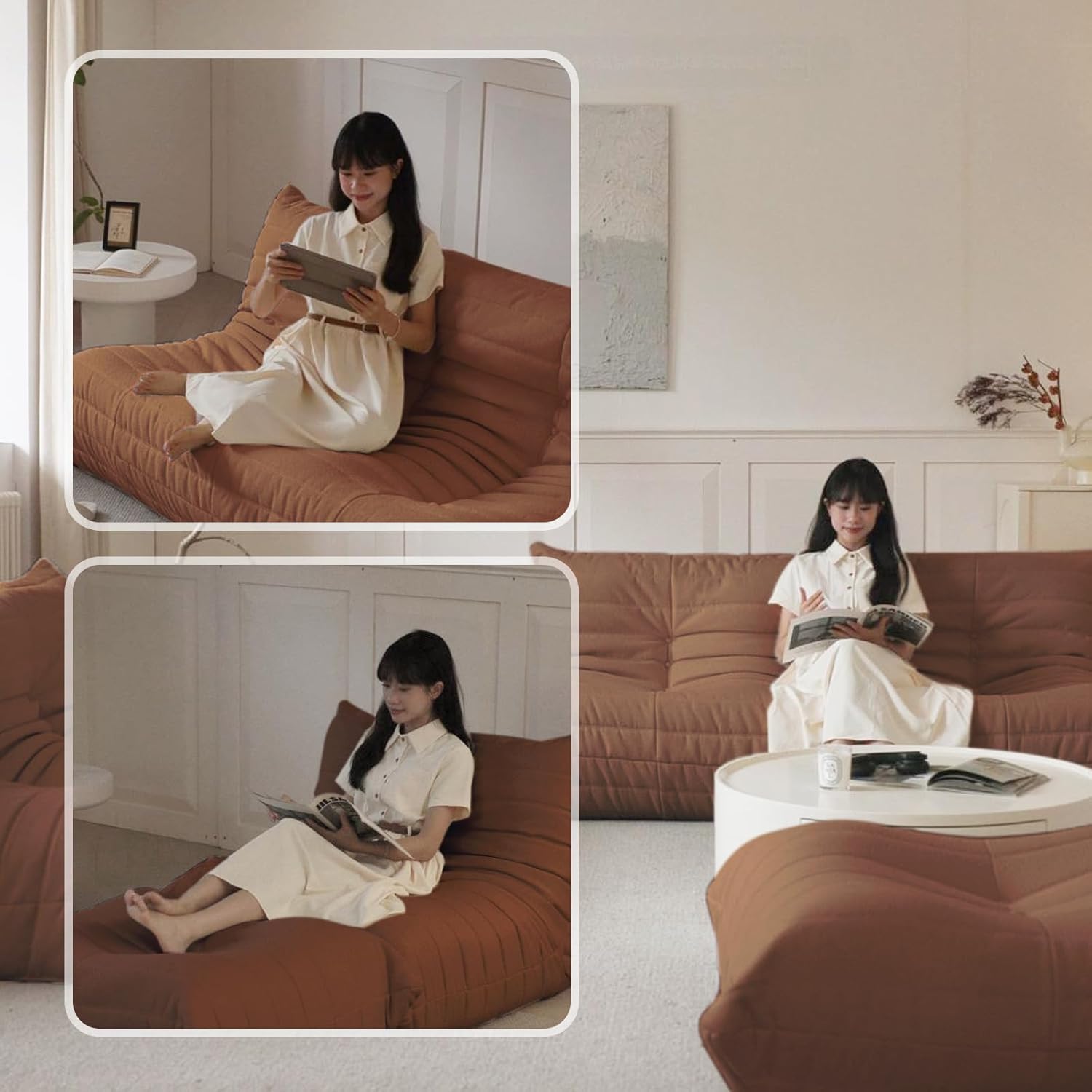Luxury Sofa Couch Chair, Lazy Floor Seating, Fireside Bean Bag Chair, Ergonomic Tatami Sofa Lounger for Living Room, Bedroom, Office, Single Seat, Brown