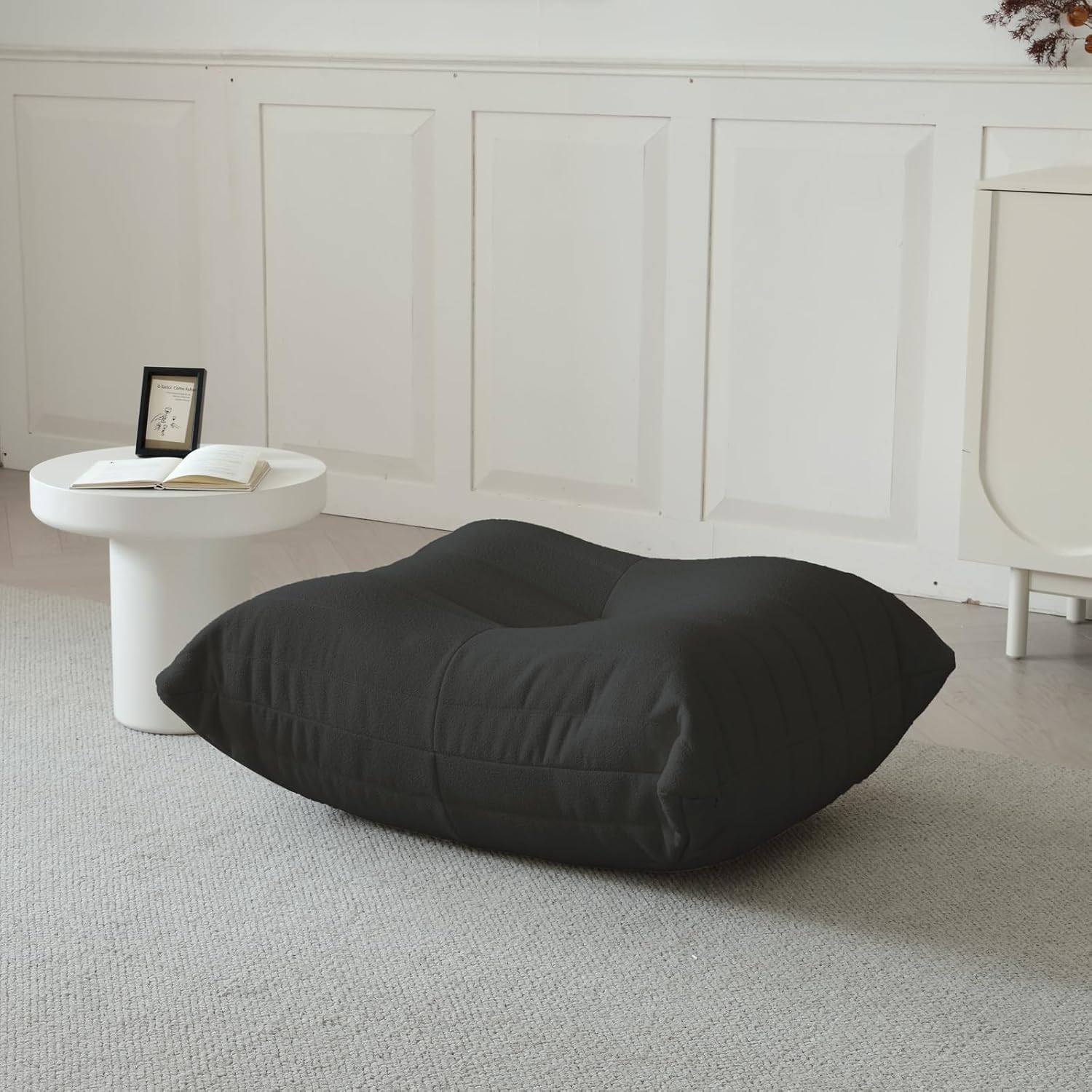 Luxury Ottomans, Modern Square Foot Rest for Sofa Couch Chair, Lazy Floor Seating, Fireside Bean Bag Chair, Tatami Sofa Lounger for Living Room, Bedroom, Office, Black