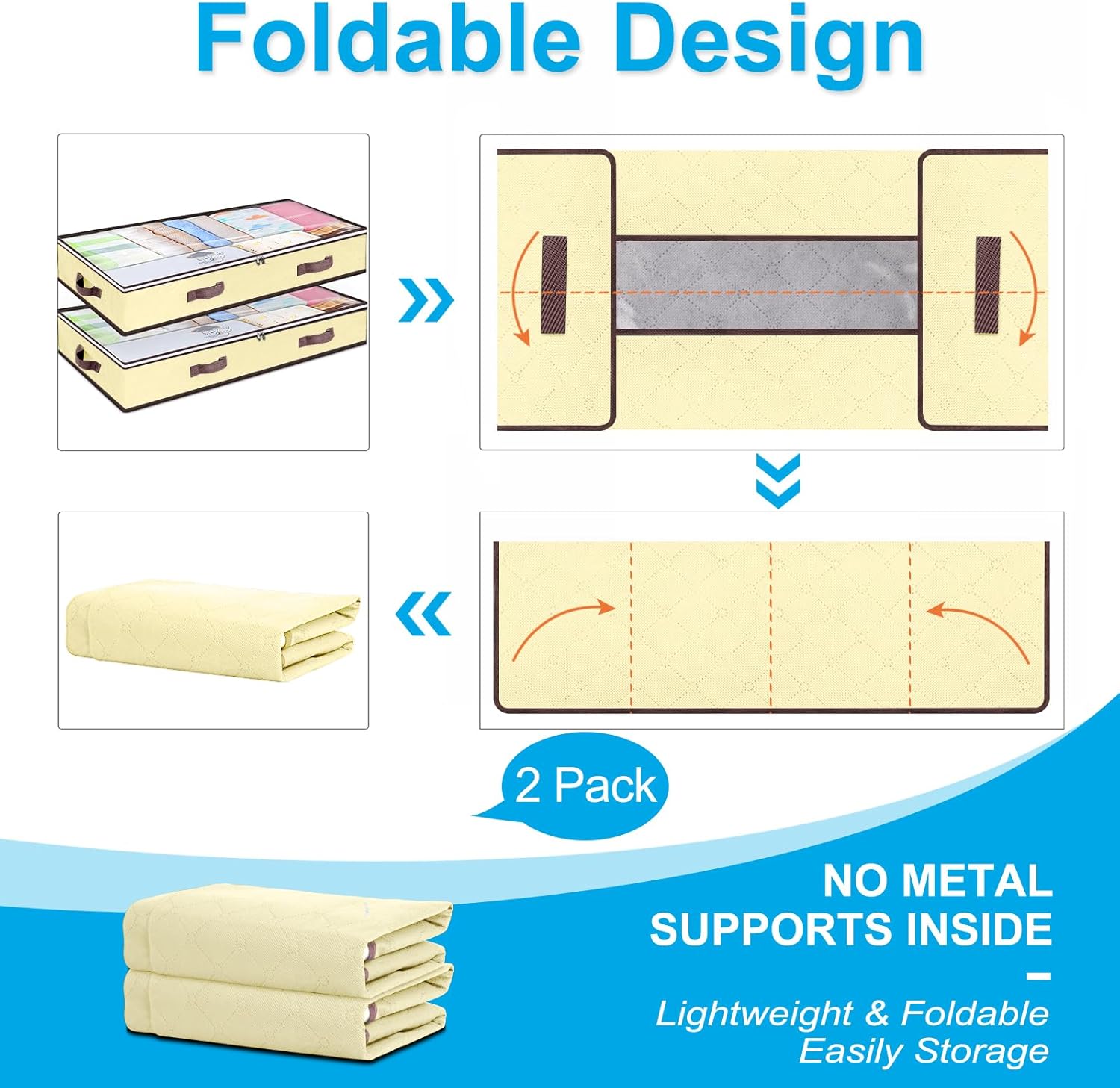 - Multipurpose Underbed Storage Bags : This set of 6 underbed storage containers fits under your bed, under your sofa, and in your closet. Very good for storing quilts, blankets, clothes, pillows, sweaters, towels, toys and other items.
