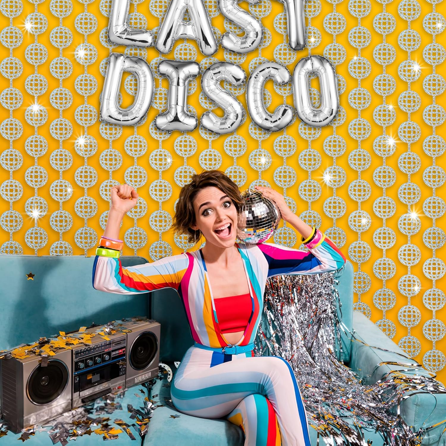 Discos Dancing Ball Shaped Party Backdrop - GREATRIL Prom Fringe Curtain Backdrop with Sparking Surface for Birthdays Discos Graduation New Years Party Decoration - 3.2ft x 6.5ft - 2 Packs
