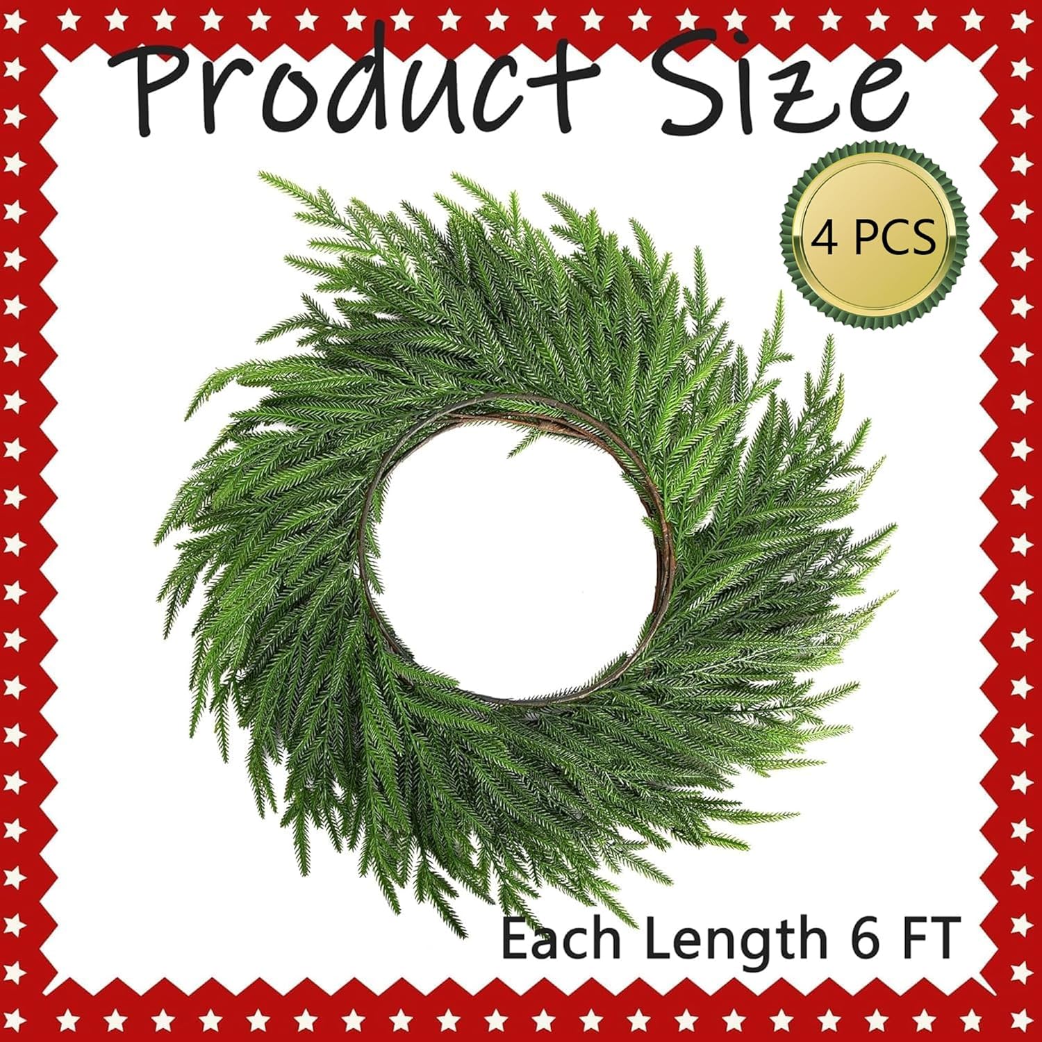Watayo 4 Pcs Christmas Norfolk Pine Garland, 6 Ft Dense Real Touch Pine Garland Ornament, Realistic Artificial Pines Greenery Garlands for Mantle, Table, Fireplace, Indoor, Outdoor Xmas Decoration