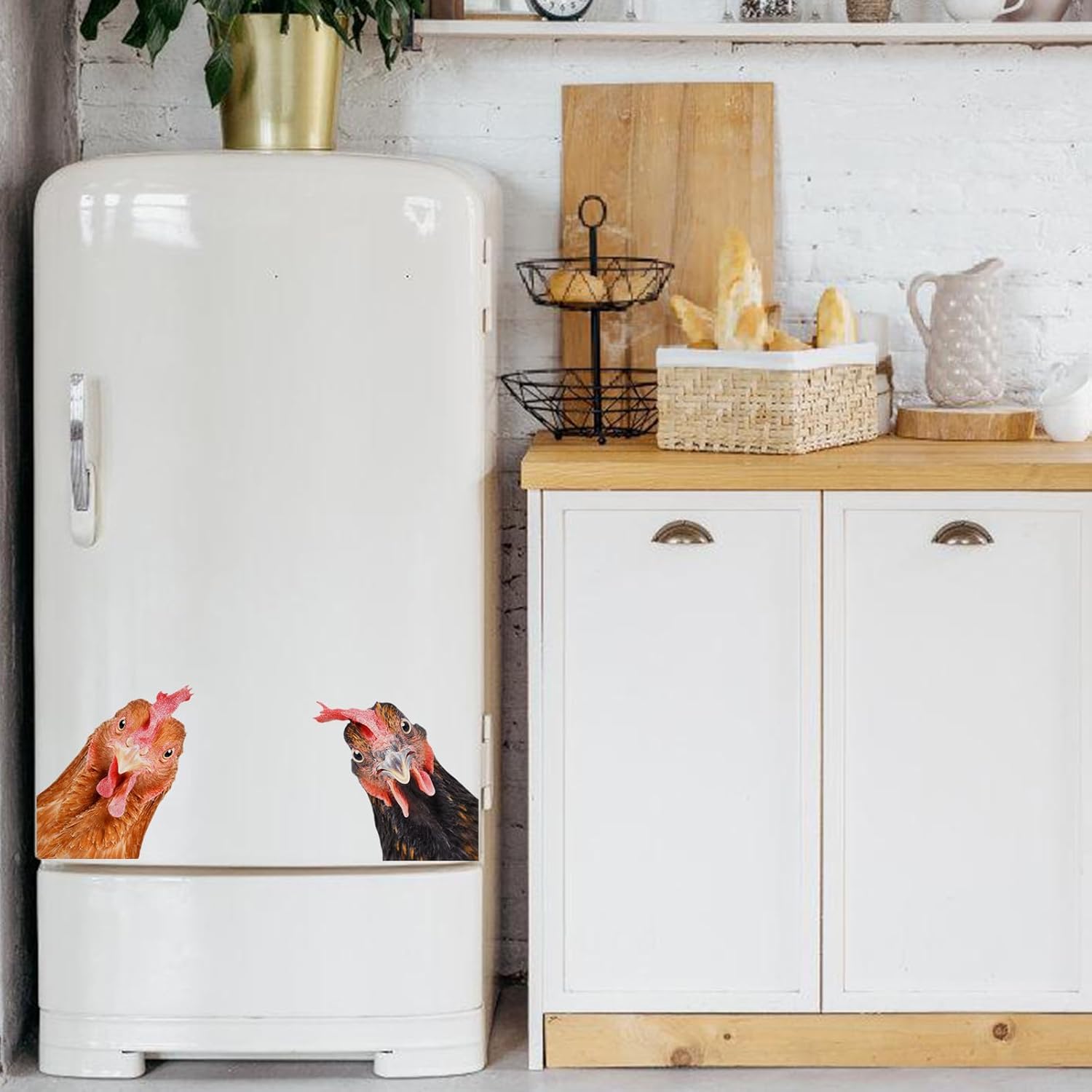 Funny Chicken Wall Decals - Peel & Stick - 2 Hens Head Window Cling - Cute Chicken Window Stickers - Gift Decal