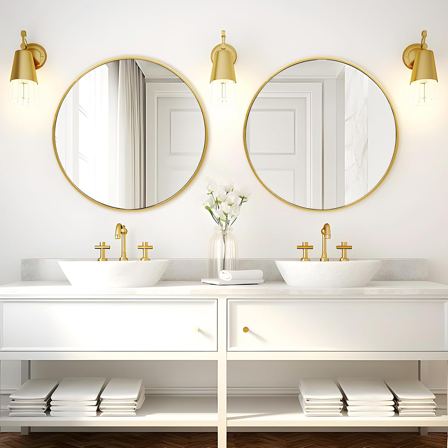 - Perfect Fit Interior Design - Great value and an excellent addition to your guest bathroom, which goes well with country chic inspired guest bathroom. And the simple round mirror is perfect fit for my entry way, bedroom, living room, baby nursery, office, which is a good wall decoration