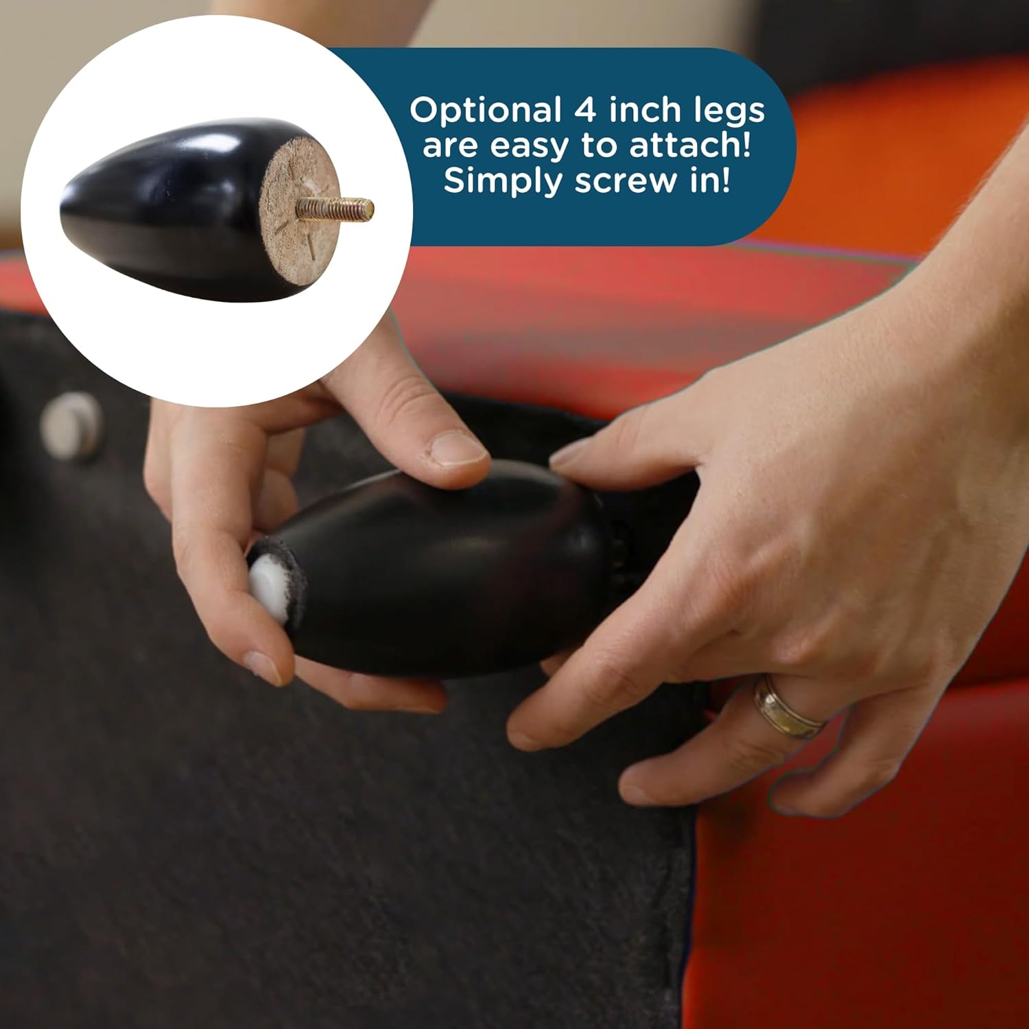 - CHAIR GROWS WITH YOUR CHILD: The adjustable toddler chair and sofa set includes 8 black wooden legs that increase each piece's height 4 inches, no hardware required