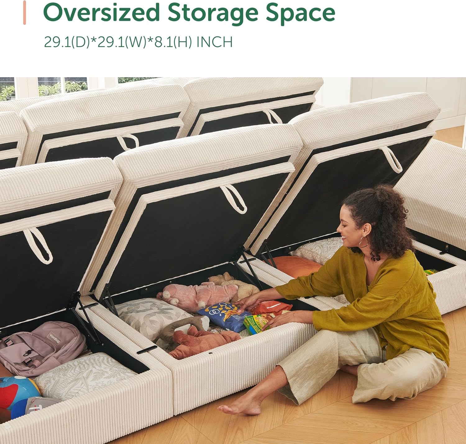 HONBAY Modular Sectional Couches with Storage Corduroy Sleeper Sofa Modular Sectional Couches for Living Room,Beige