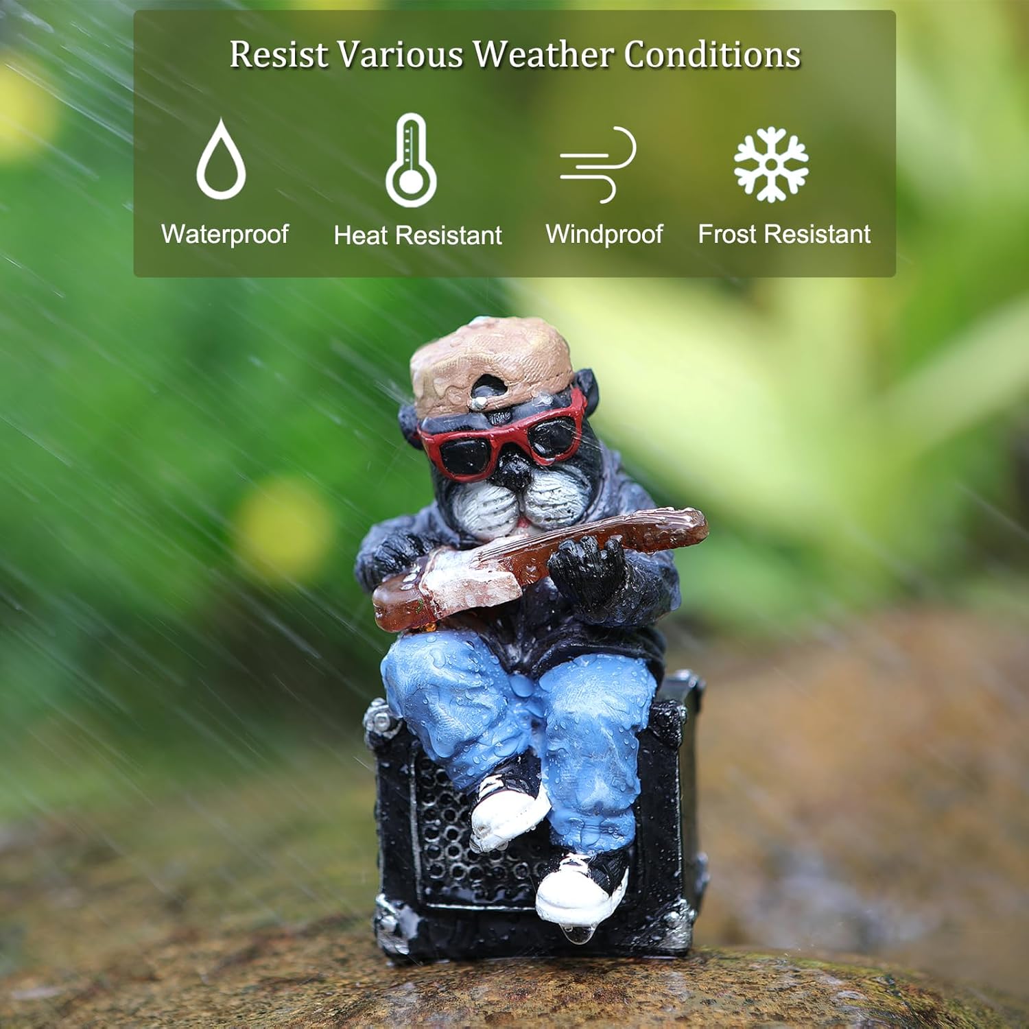 Solar Dog Outdoor Statues Figurine for Garden Decorations, Whimsical Outside Decor with Guitar Clearance for Patio Balcony Yard Lawn Ornament,Unique Garden Birthday Gifts Statues for Mom Women