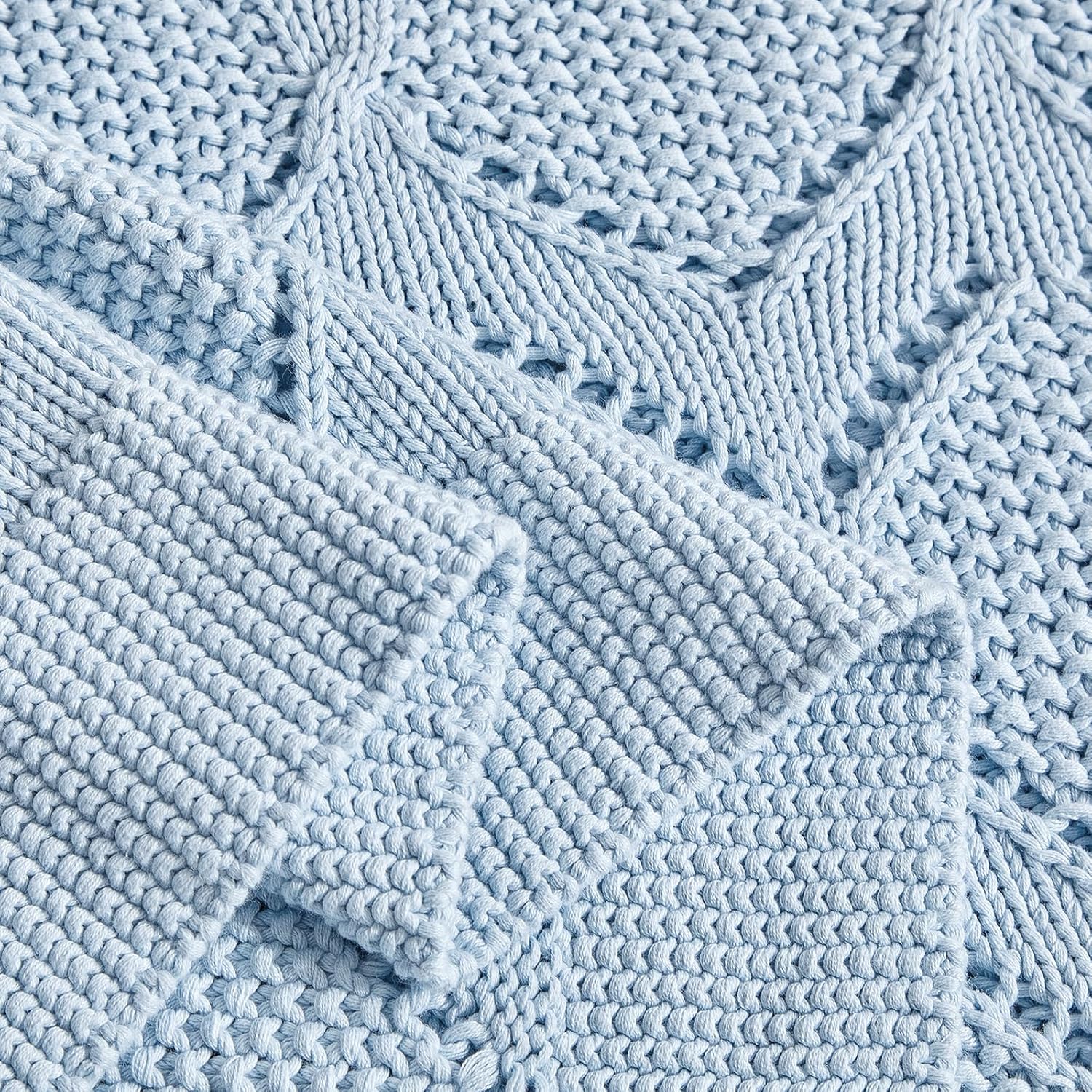 Longhui bedding Chunky Cotton Knit Throw Blanket for Couch, Sofa, Bed, or Chair, Decorative Breathable Fall Cable Knit Blanket 60 x 80 Inches, Light Blue