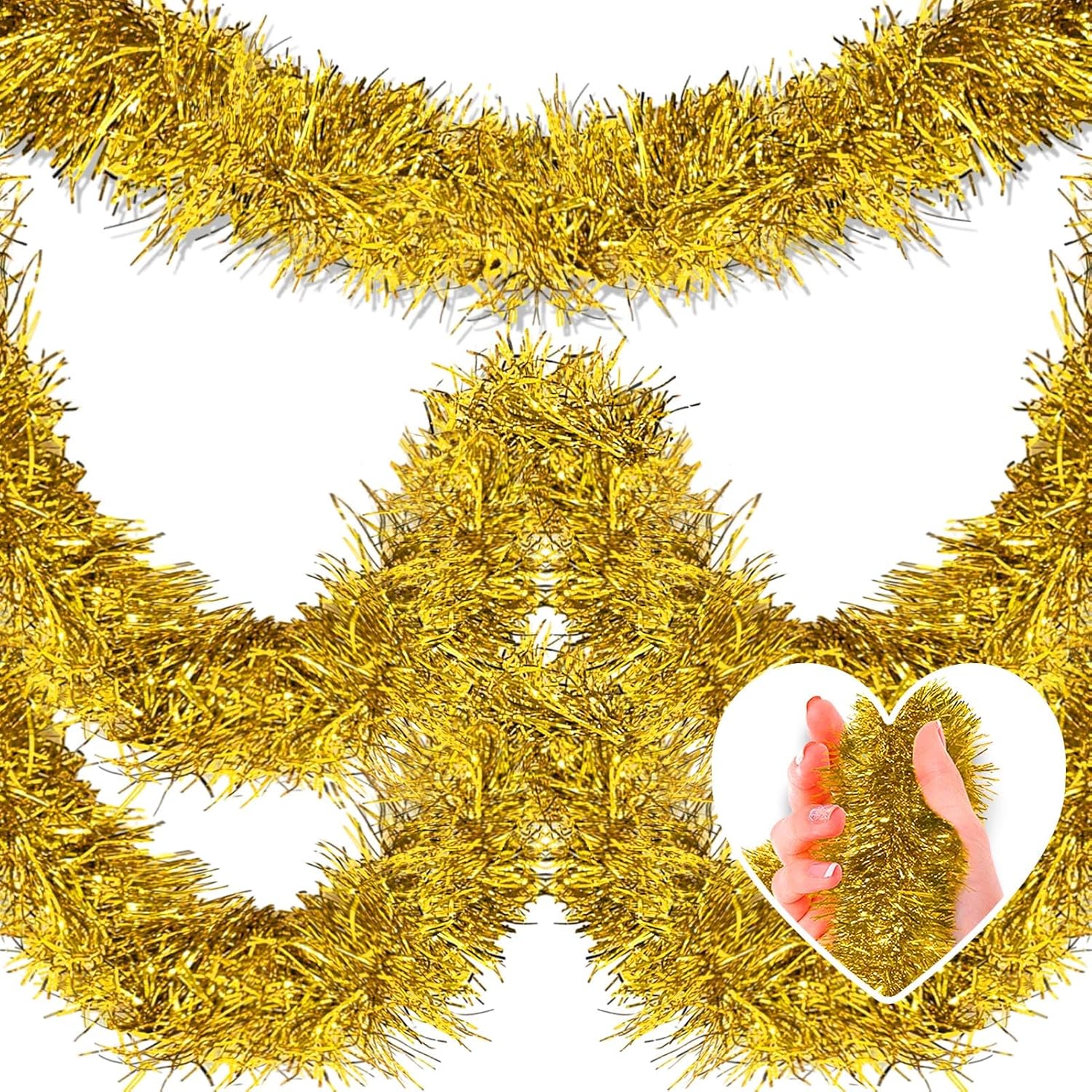 50 Feet Christmas Tinsel Garland, Metallic Twist Wall Hanging Backdrop for Parade Floats, Christmas Eve, New Year Party Decorations (Gold, 2in x 50ft)