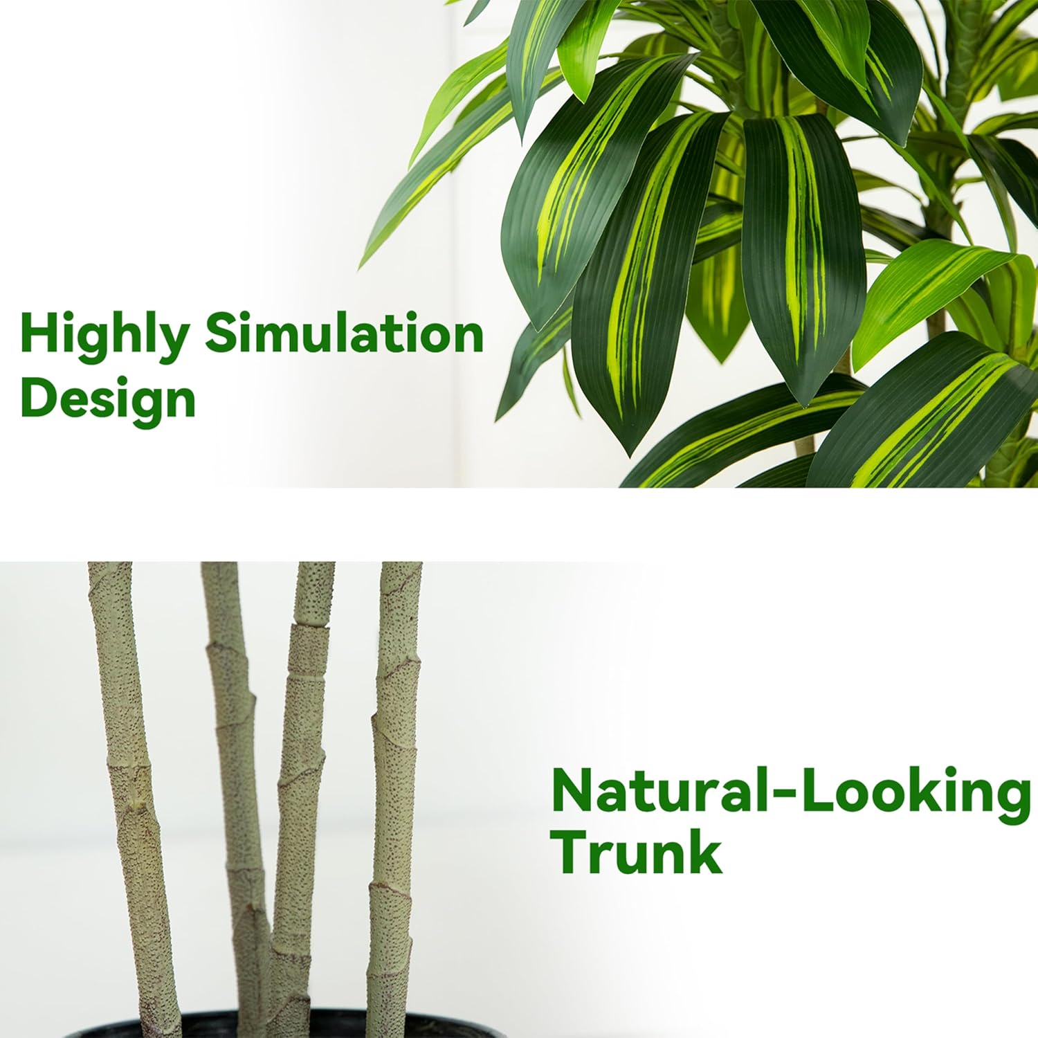 - Why FSOHOI? - It's a artificial dracaena tree with white Tall planter, featuring realistic 4 trunks! These designs give faux dracaena plant a lifelike appearance with realistic texture and look, bringing the beauty of nature right into your home.