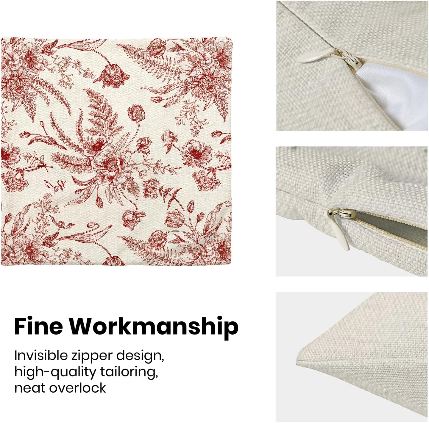 - 【Spring Pillow Covers】 Our Chinoiserie floral throw pillow covers 18x18 inch are made of excellent breathable polyester cotton fabric. The red and White floral decorative pillow covers is sturdy, soft and skin-friendly. The plant outdoor pillow covers adopt exquisite edging technology and four sides of our floral pillow covers are sewn firmly, which is not easy to open the line.