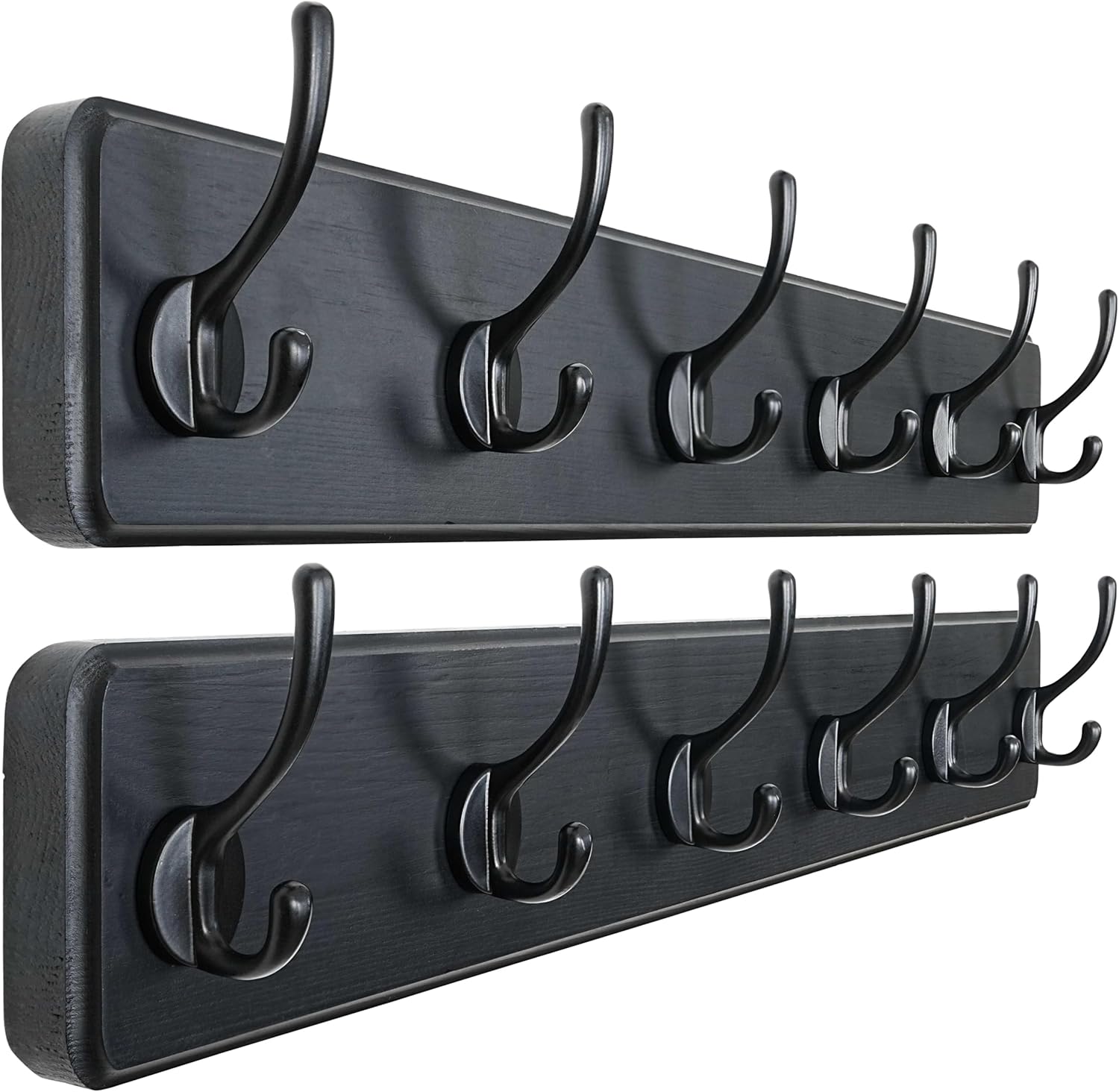 Dseap Wall Mounted Coat Rack: 24" Long, Patented, Heavy-Duty, 6-Double-Hooks Wooden Hanger Rail for Winter Coats, Hat, Jacket, Clothing - Black, Pack of 2