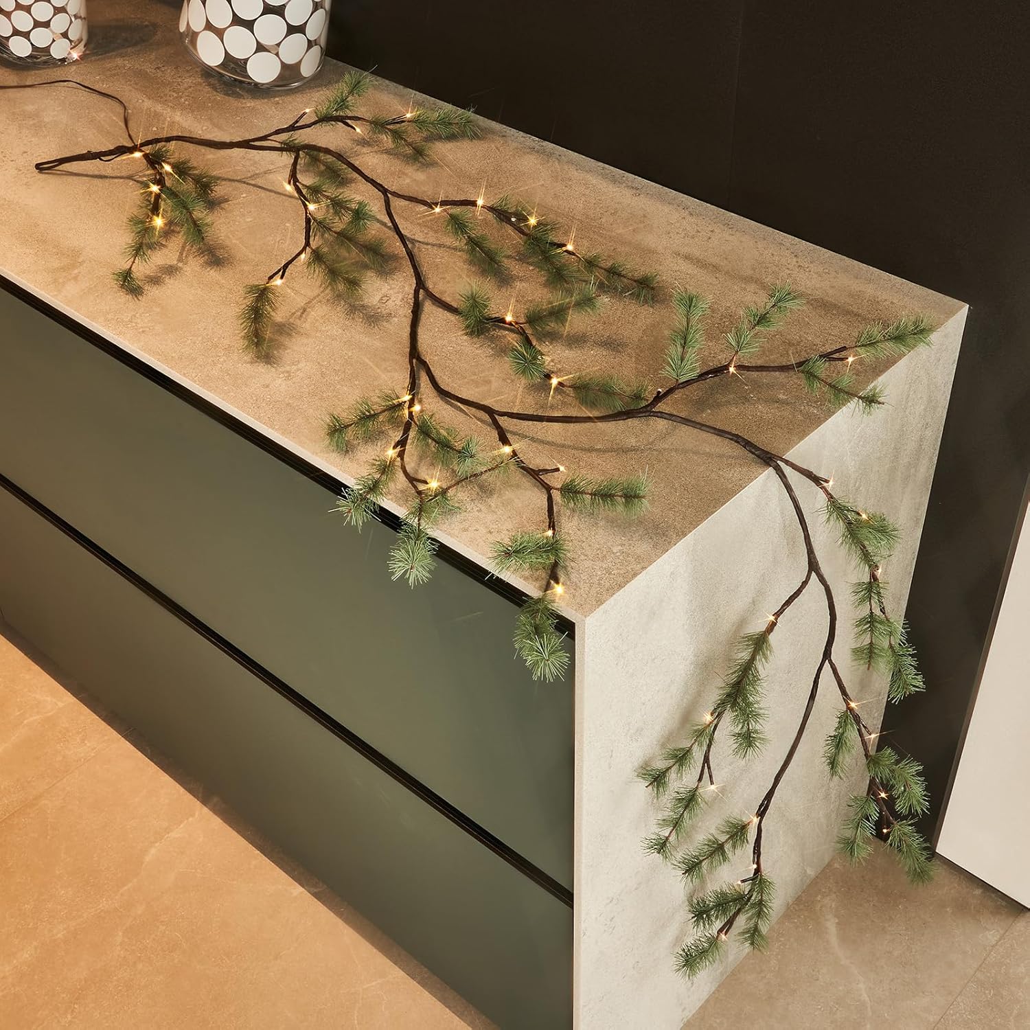 - 【HEAVENLY LIGHTS】: Up to 48 warm white micro LED bulbs nestled on the Pine garland cast a subtle glow that adds warmth to your home and Christmas holiday decor
