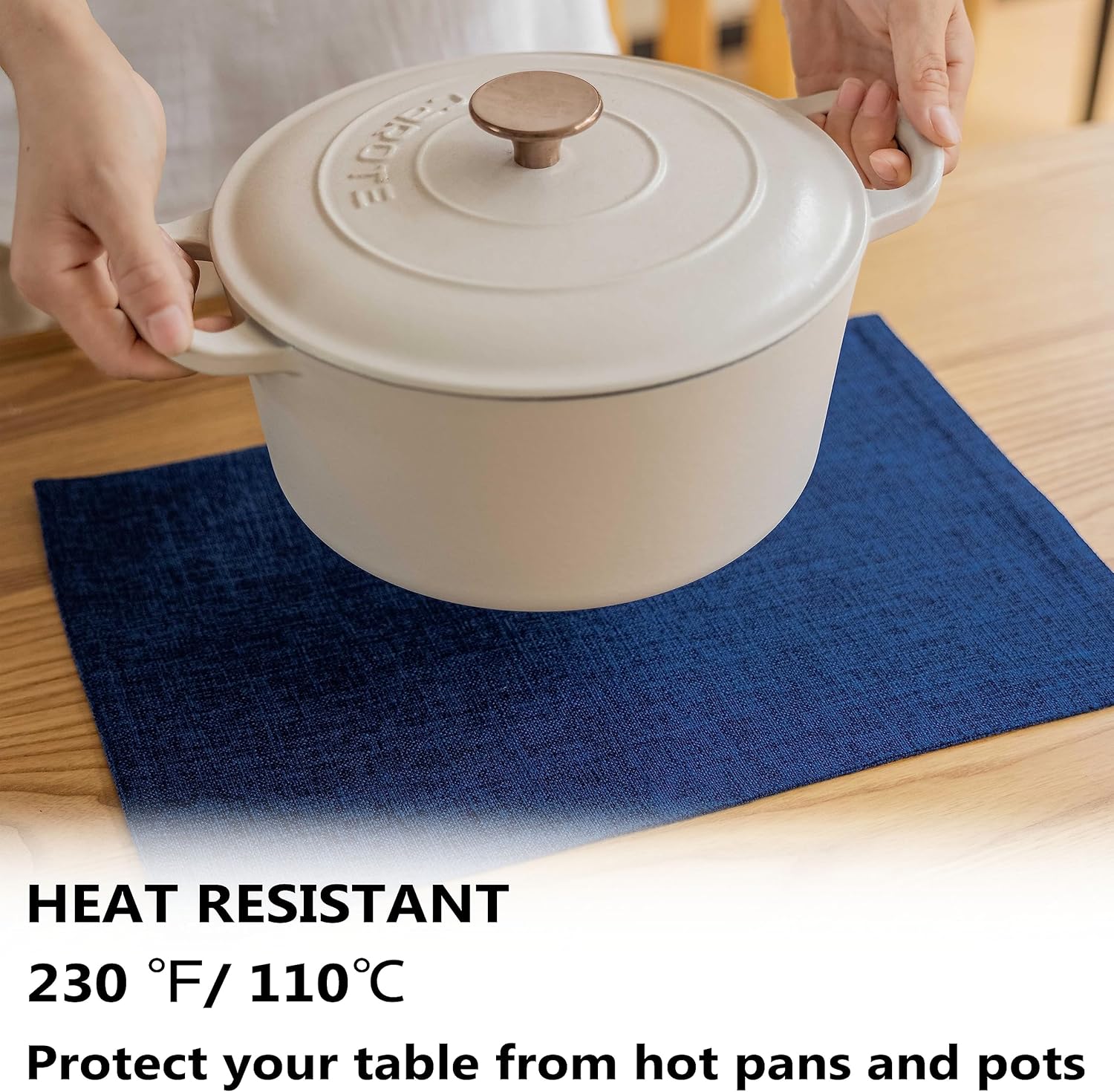Demetex Navy Blue Place Mats Set of 8 Modern Wipeable Placemats Heat Resistant Table Mats for Holiday Picnic Dinner, 13x19 inch, Navy Blue