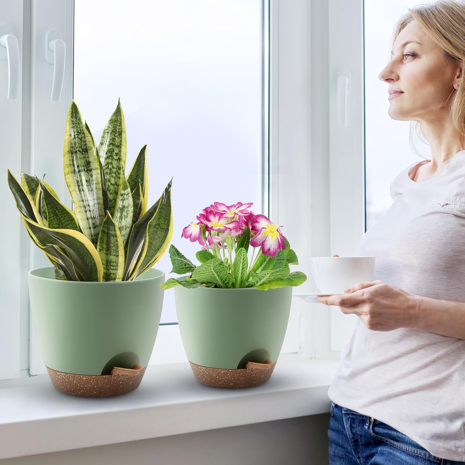 Plant Pots 12/10/9 Inch Self Watering Pots, Set of 3 Plastic Planters with Drainage Holes and Saucers,Plastic Flower Pots,Nursery Planting Pot for Indoor Out Door Plants(Green)