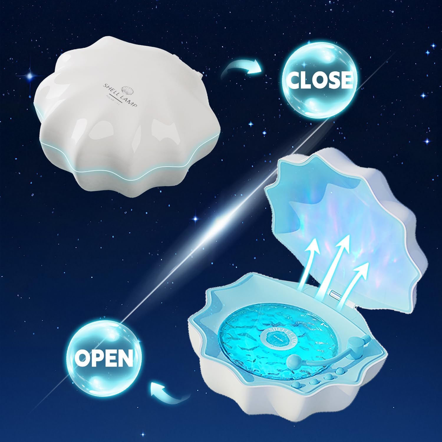 - Innovative Night Light Design: This unique night light blends the tranquil beauty of ocean waves with the brilliance of the aurora. Its elegant, shell-inspired design captures the essence of the sea, while the combination of wave and aurora projections creates a mesmerizing atmosphere. Perfect for adding a touch of magic to your nights, it provides a truly immersive and one-of-a-kind experience