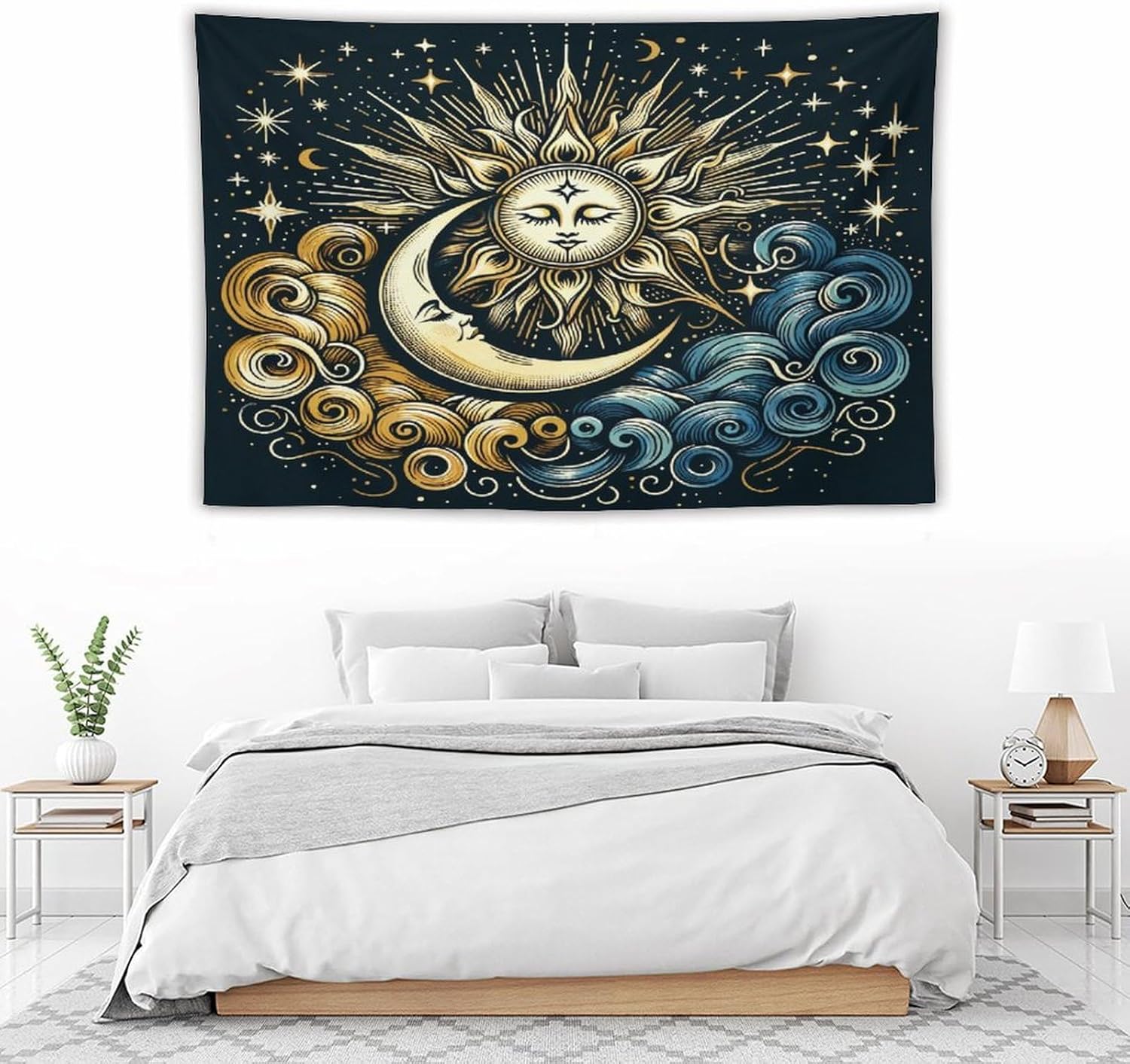 HZOHNAGO Sun Moon Tapestry Boho Golden Stars Pattern Printed Wall Tapestry Wall Hanging for Bedroom Living Room Dorm 90" W x 60" H