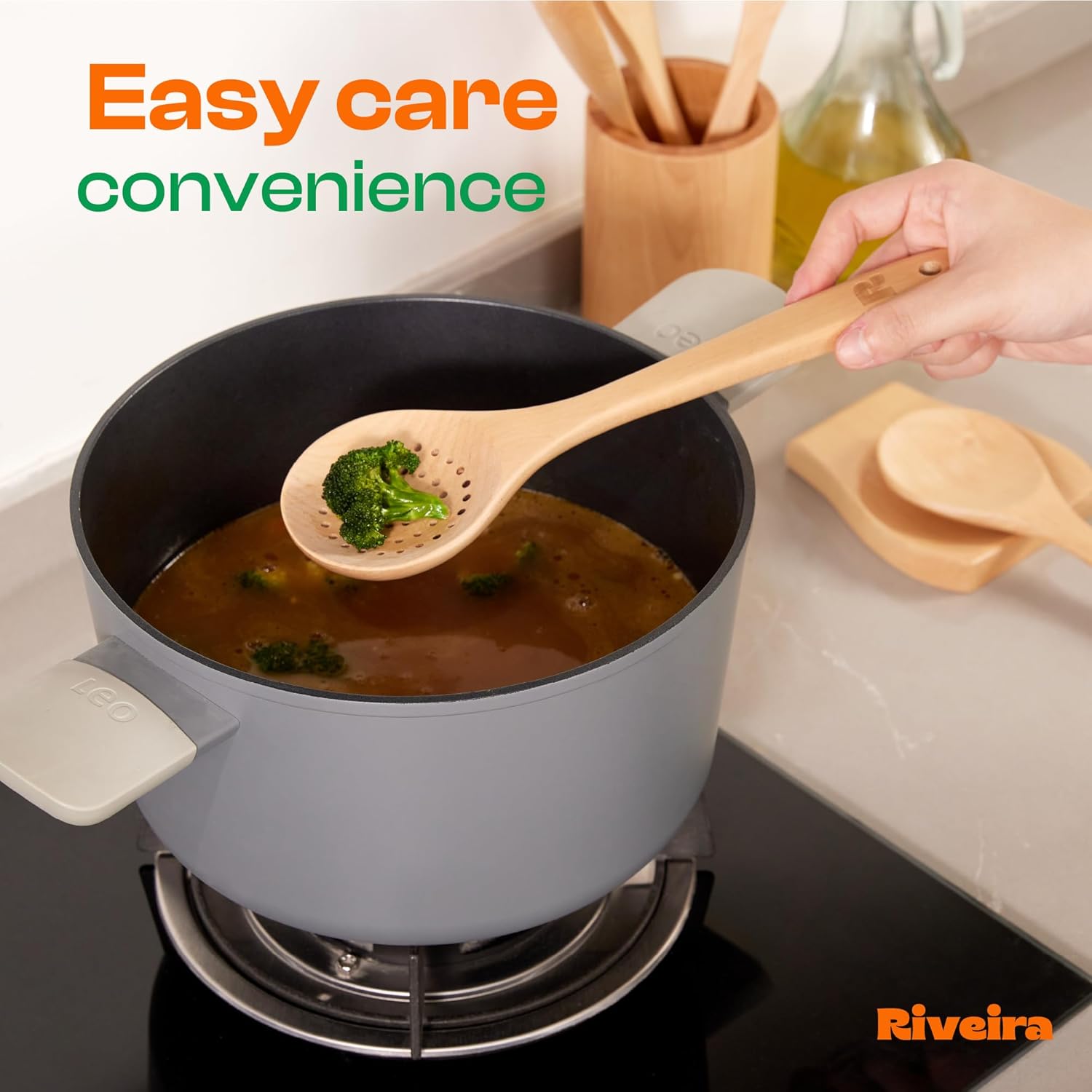 Riveira Maple Wooden Spoons for Cooking Set of 6 – Natural Maple Wooden Cooking Utensils, Wooden Spatula, Wooden Spoon - Premium Quality Wooden Utensil Set for Non-Toxic Cooking