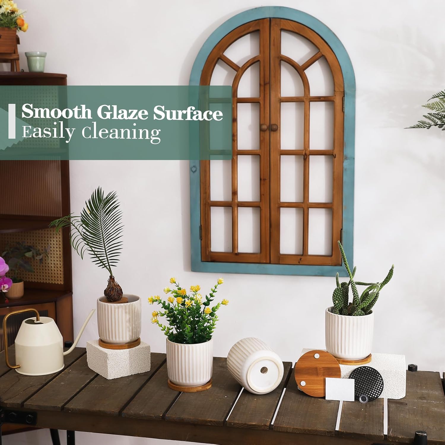 - Minimalist Design Elements - The plant pots in smooth glaze are easy to clean. These beige plant pots in minimalist design go well with any decoration, also looks fantastic in any settings.