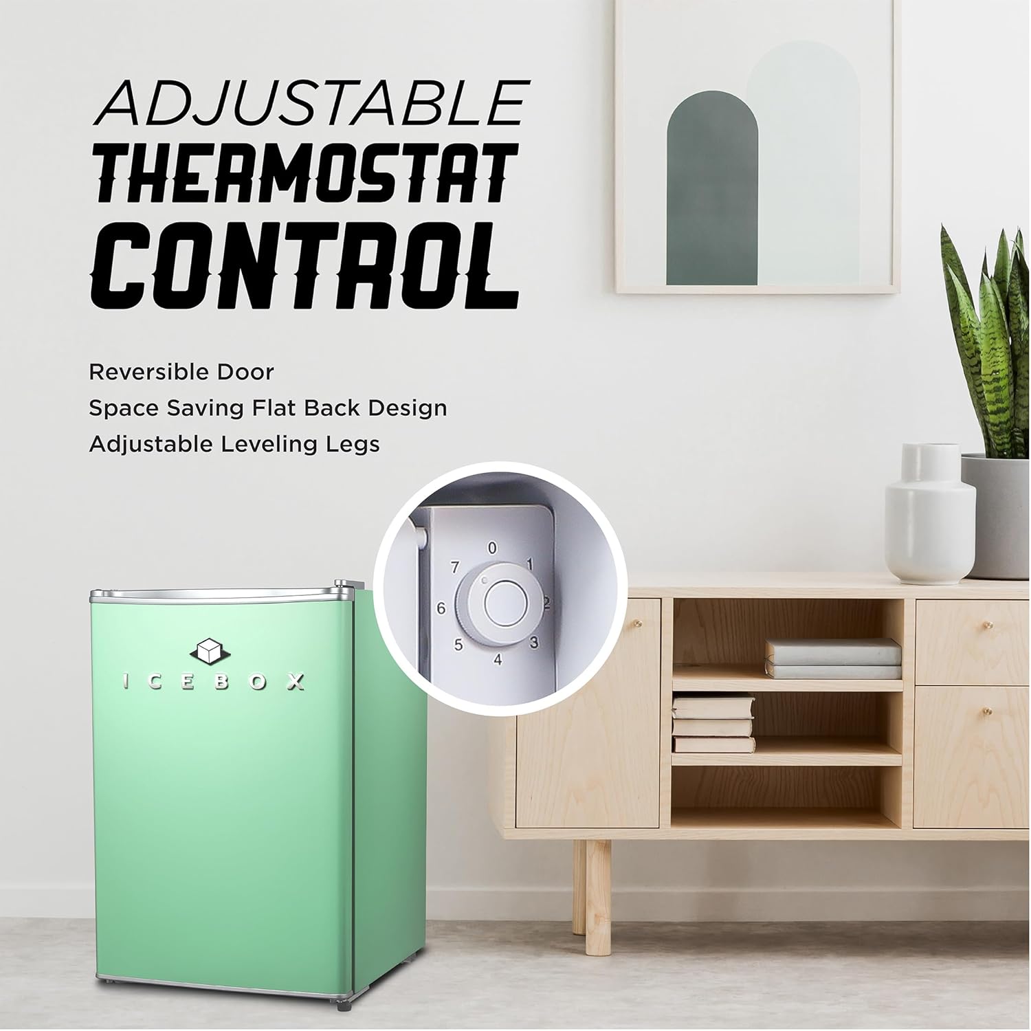 IBCR25MNT Compact, Energy Star Certified Small, Single Door Mini Fridge with Freezer Refrigerator, Large (2.5 cu ft), Mint Green