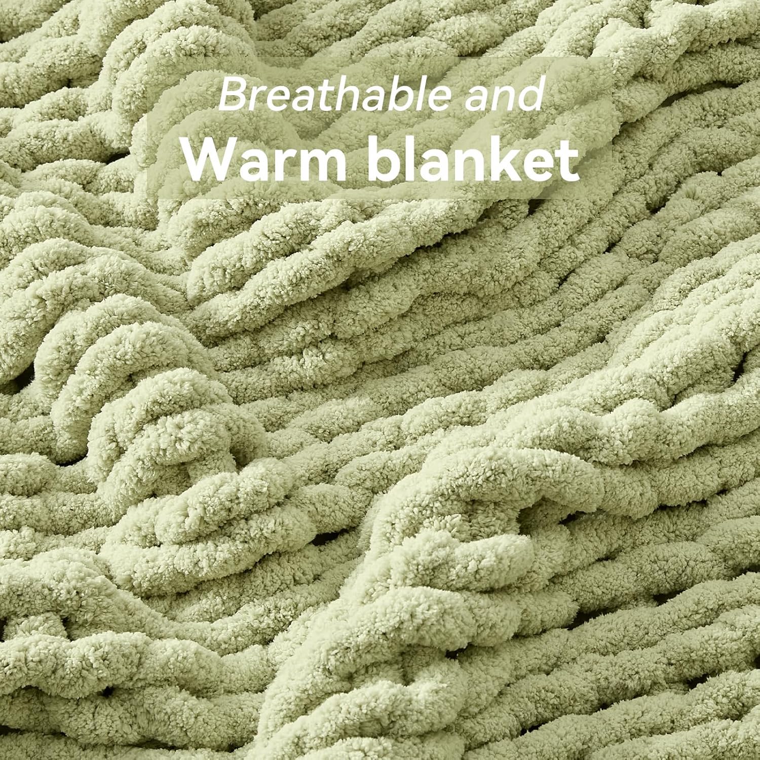 Chunky Knit Throw Blanket, 60''*80'' Knitted Throw Chenille Yarn for Bed Couch, Handmade Light Green Crochet Big Thick Blanket, Machine Washable Cute Comfy Blanket for Home Decor